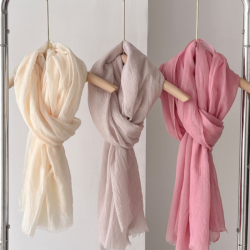 Embrace effortless style with this lightweight beige shawl scarf, crafted from a breathable cotton-linen texture. Soft and airy, it drapes beautifully as a shawl, scarf, or wrap, offering versatile styling for any occasion. Perfect for sun protection and travel, this timeless accessory adds comfort and elegance to your everyday look.