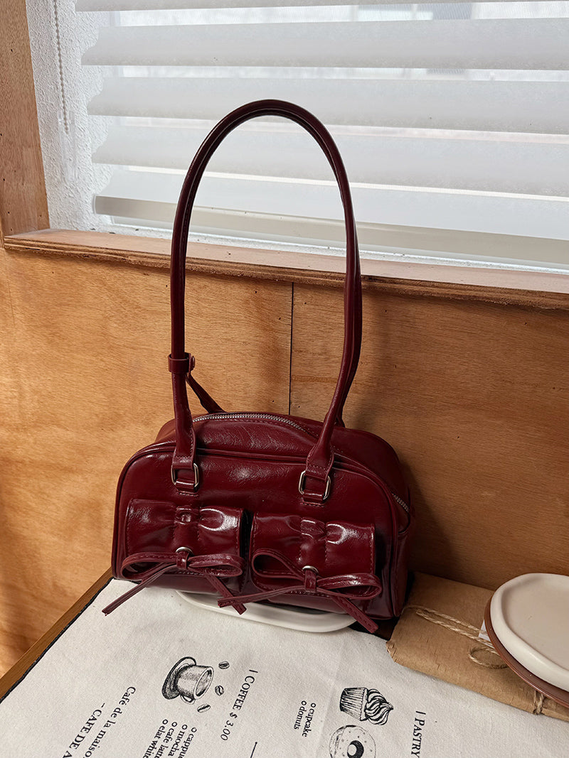 Celebrate the season in style with this festive Christmas bow shoulder bag, designed with a playful yet elegant twist. Featuring a trendy pillow silhouette and a soft bowling bag structure, this underarm and handheld bag is perfect for adding charm to your holiday and winter looks. The oversized bow detail adds a touch of femininity, while the spacious interior makes it ideal for daily commutes, casual outings, or festive gatherings. Both practical and fashion-forward, this versatile handbag is sure to become your go-to accessory all winter long.