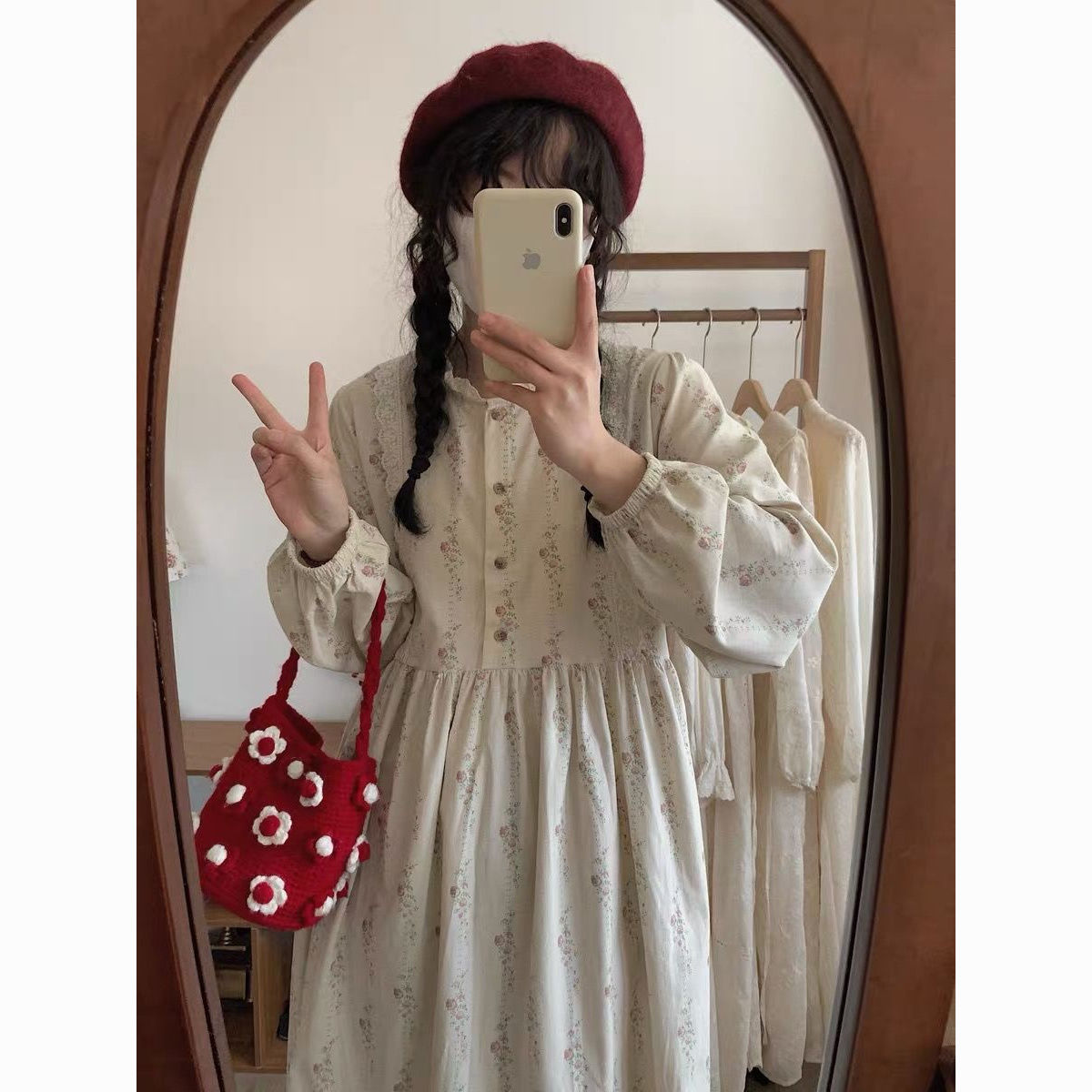 Step into autumn with this charming corduroy floral midi dress. Featuring a sweet lace-trimmed round neckline and delicate lace accents, this dress perfectly combines comfort and elegance. The loose-fit design and long sleeves make it ideal for chilly days, while the soft corduroy fabric and floral pattern bring a cozy, vintage-inspired feel. Perfect for casual outings, picnics, or coffee dates, this dress is a must-have for those who love feminine and timeless styles.