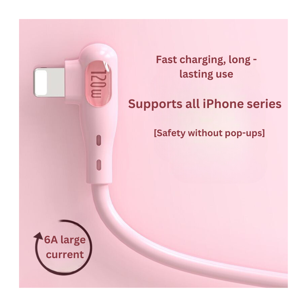 Charge your iPhone faster and more conveniently with our Curved Fast Charging Cable. Specially designed for iPhone 14, 11, 7, 8, 6, and iPhone 2, this cable ensures a smooth and uninterrupted charging experience. Whether you're gaming or multitasking, the curved design prevents the cable from blocking your hands, giving you maximum comfort and flexibility.