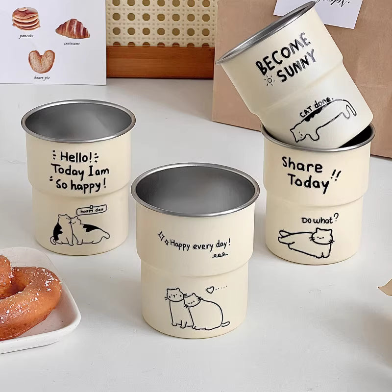 This cute cat doodle travel cup features a clean and playful design that adds charm to everyday hydration. Made from durable stainless steel, it is safe, sturdy, and easy to clean. The lightweight and portable shape makes it perfect for travel, camping, school, office, or daily outings. Designed for comfortable carrying and everyday use, this cup blends practicality with an adorable aesthetic, making it a lovely choice for cat lovers and minimalist lifestyle enthusiasts.