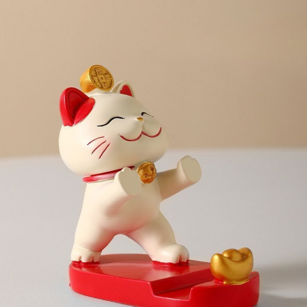 Add charm and functionality to your space with this adorable Siamese cat phone stand. Designed with a playful cat-pouncing pose, this stand securely holds your phone on desks, nightstands, or countertops. Made with attention to detail, it also doubles as a decorative lucky cat ornament, bringing a touch of personality and joy to any room. Perfect for cat lovers and anyone who appreciates unique, creative decor.