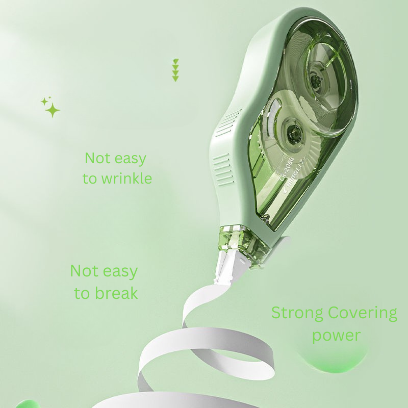 This durable correction tape is specially designed for students, offering a large capacity and smooth coverage that won’t break easily. Built with a sturdy, drop-resistant body, it’s perfect for busy school life and frequent use. The high-quality tape applies cleanly without skipping or tearing, helping students keep their notes neat and tidy. With its sleek and stylish design, it's both functional and visually appealing, making it a great addition to any pencil case.