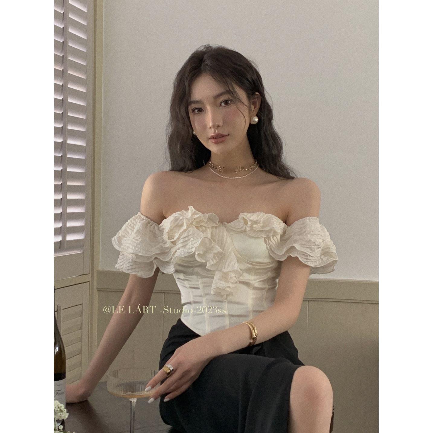 This elegant off-shoulder top features a slim fit and playful ruffle details, exuding pure lust and sophistication. Perfect for a night out, it will hug your curves for a confident and sexy look. Made with high-quality materials, you'll feel comfortable and chic all night long.
