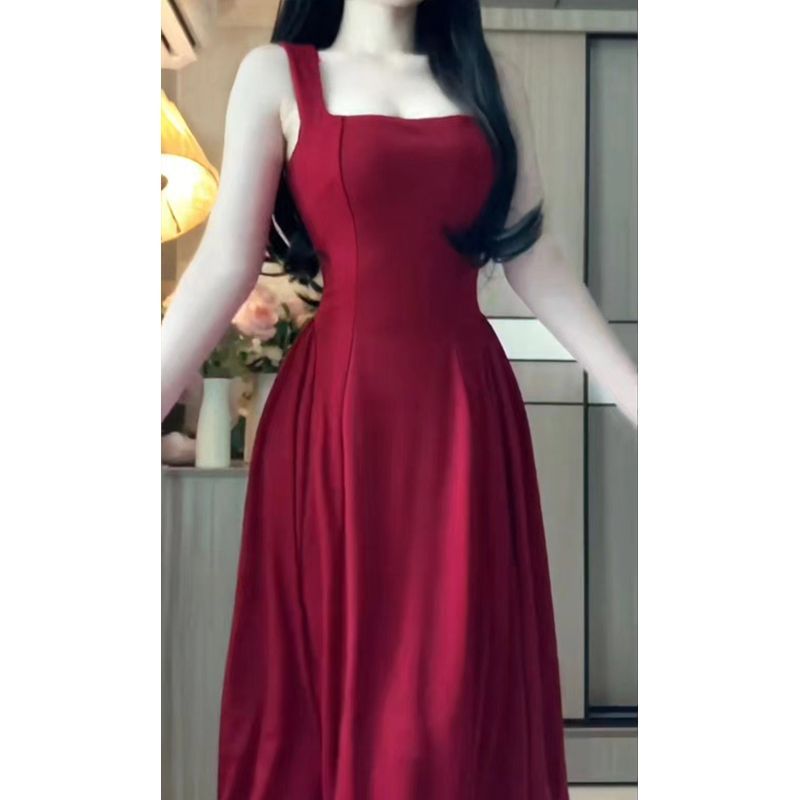Channel timeless elegance with this French-inspired red spaghetti strap dress, designed with a classic Hepburn silhouette. Featuring a flattering square neckline and a cinched waist, this long dress enhances your natural curves while maintaining a graceful and refined style. The rich red color adds a touch of sophistication, making it perfect for formal events, dinners, or any occasion where you want to stand out with effortless charm.