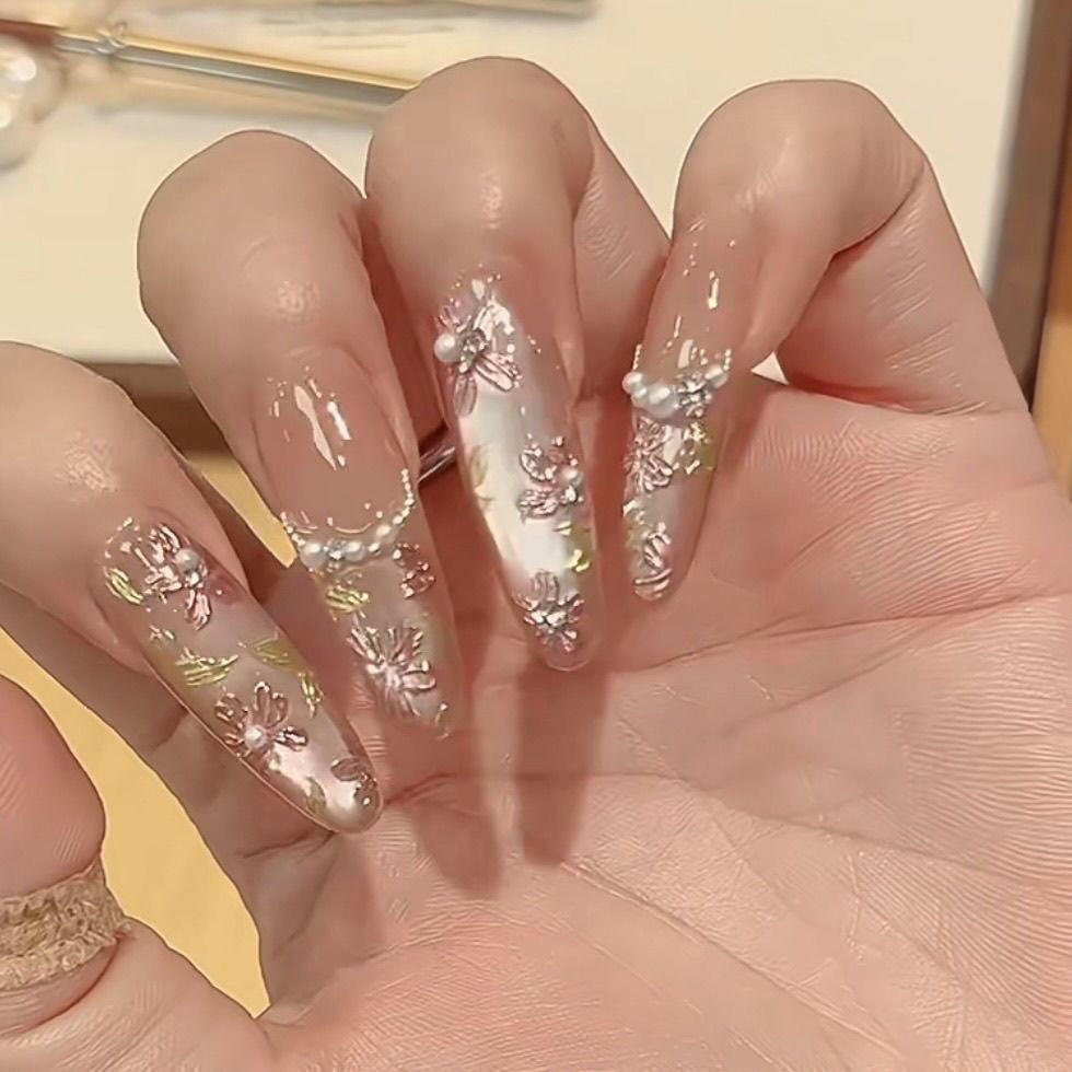 Golden Jade Bloom Cat Eye Press On Nails bring a touch of luxury with hand painted artistry and shimmering cat eye design. The delicate floral inspired details enhance elegance while creating a brightening effect on your skin tone. Each piece is carefully handmade for a unique, high end finish, giving salon quality style at home. Reusable and easy to wear, they are perfect for adding sophistication to everyday looks, parties, or special occasions
