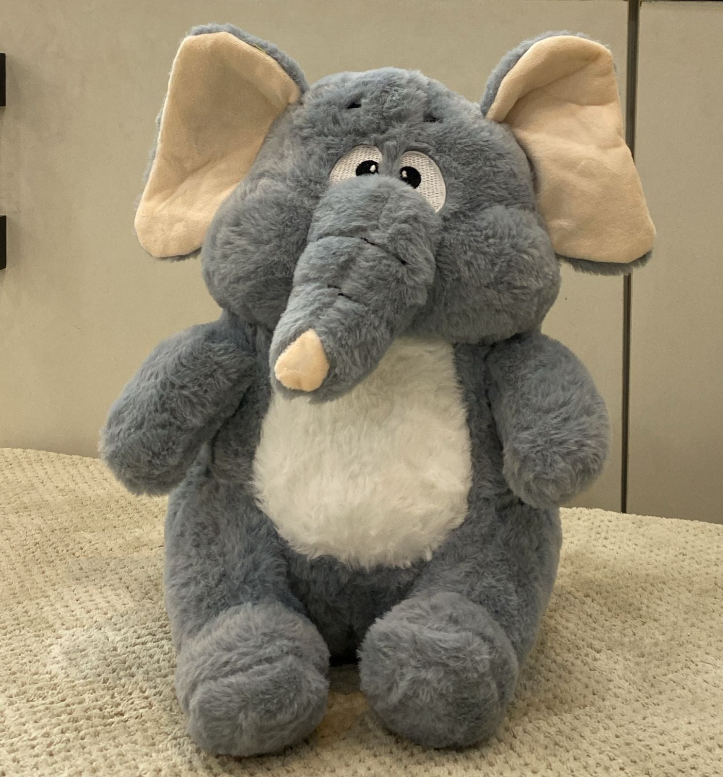 This adorable grey stuffed elephant plush animal is a soft and cuddly companion ideal for children and collectors. Made with soft, breathable plush fabric and filled with high-quality PP cotton, this toy is fluffy and full. The charming design features large ears, a small trunk, and a white belly, making it a perfect gift for birthdays or special occasions. This durable and huggable elephant provides comfort and imaginative play for all ages.