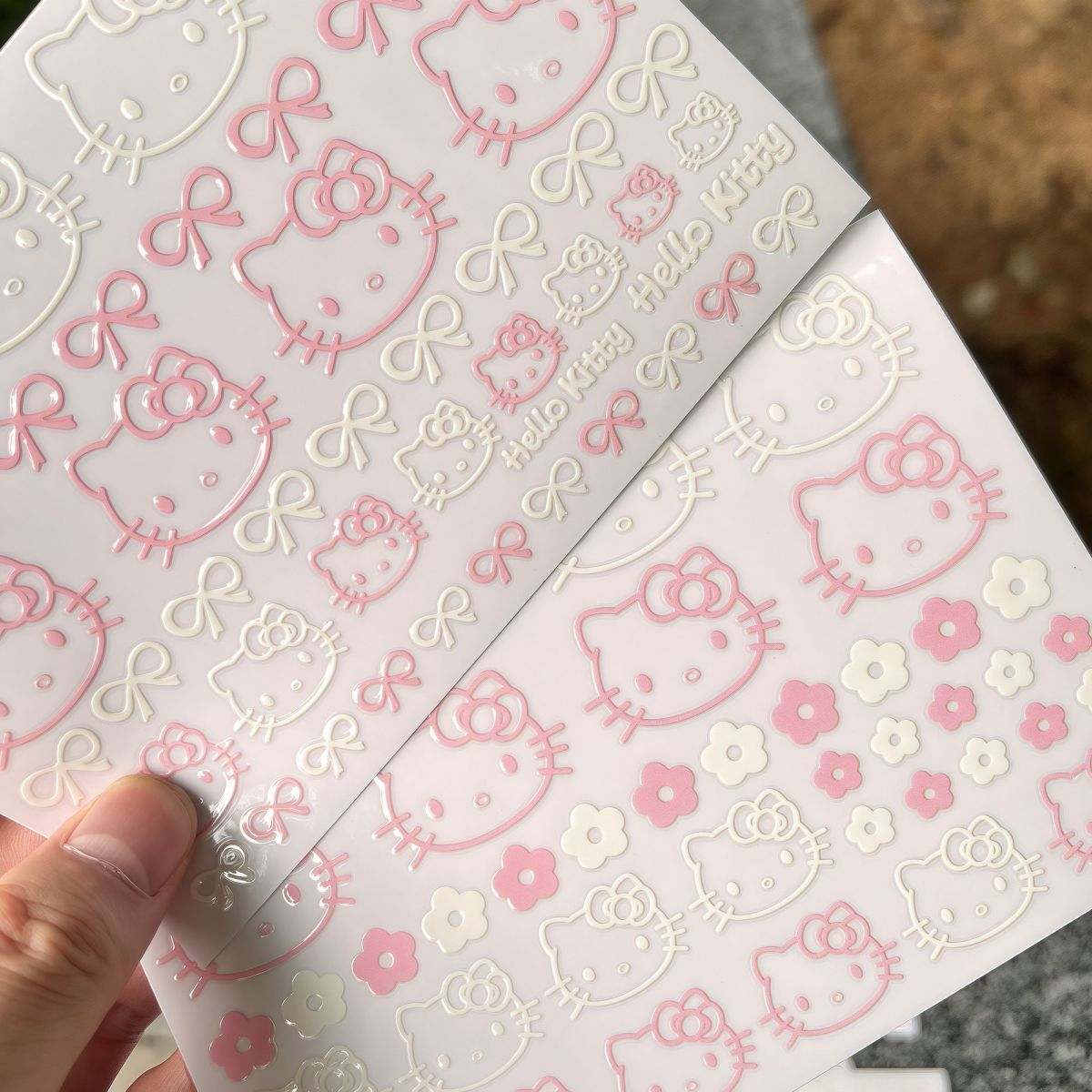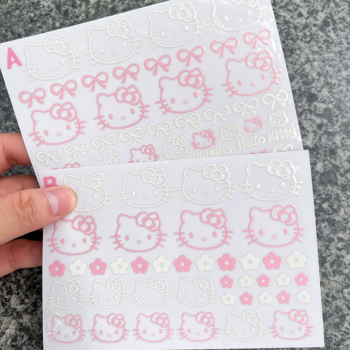 These Hello Kitty line art crystal transfer stickers feature clean outlines and a glossy, refined finish. Designed to be waterproof and abrasion-resistant, they maintain clear patterns even with daily use. The strong adhesive allows smooth application on phone cases, water bottles, earphone cases, notebooks, and other accessories. Cute yet minimal, these stickers are perfect for personalizing everyday items while keeping a neat and polished look.
