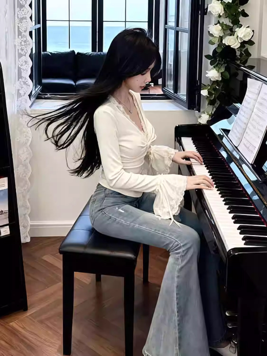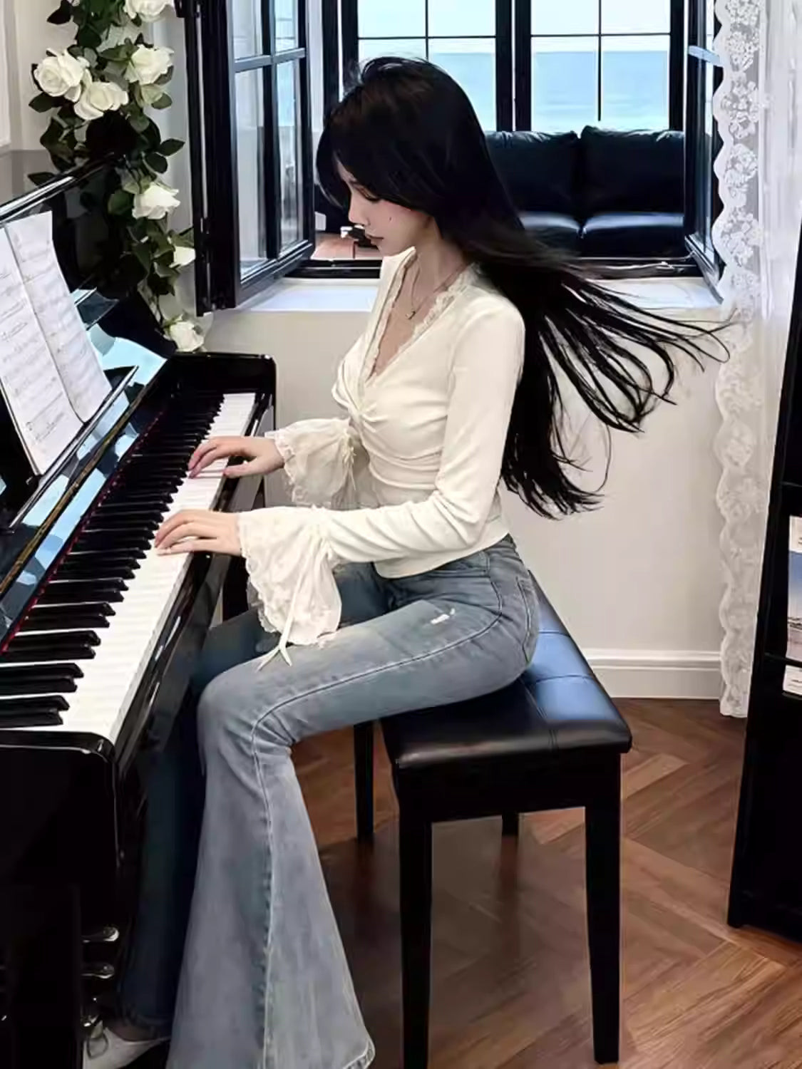 Elevate your autumn wardrobe with our 2025 Korean Pure Desire V-Neck Lace Blouse, designed for women who love effortless elegance with a soft, feminine touch. Inspired by trending Korean fashion aesthetics, this vintage-style lace pullover blends delicate romance with modern minimalism.