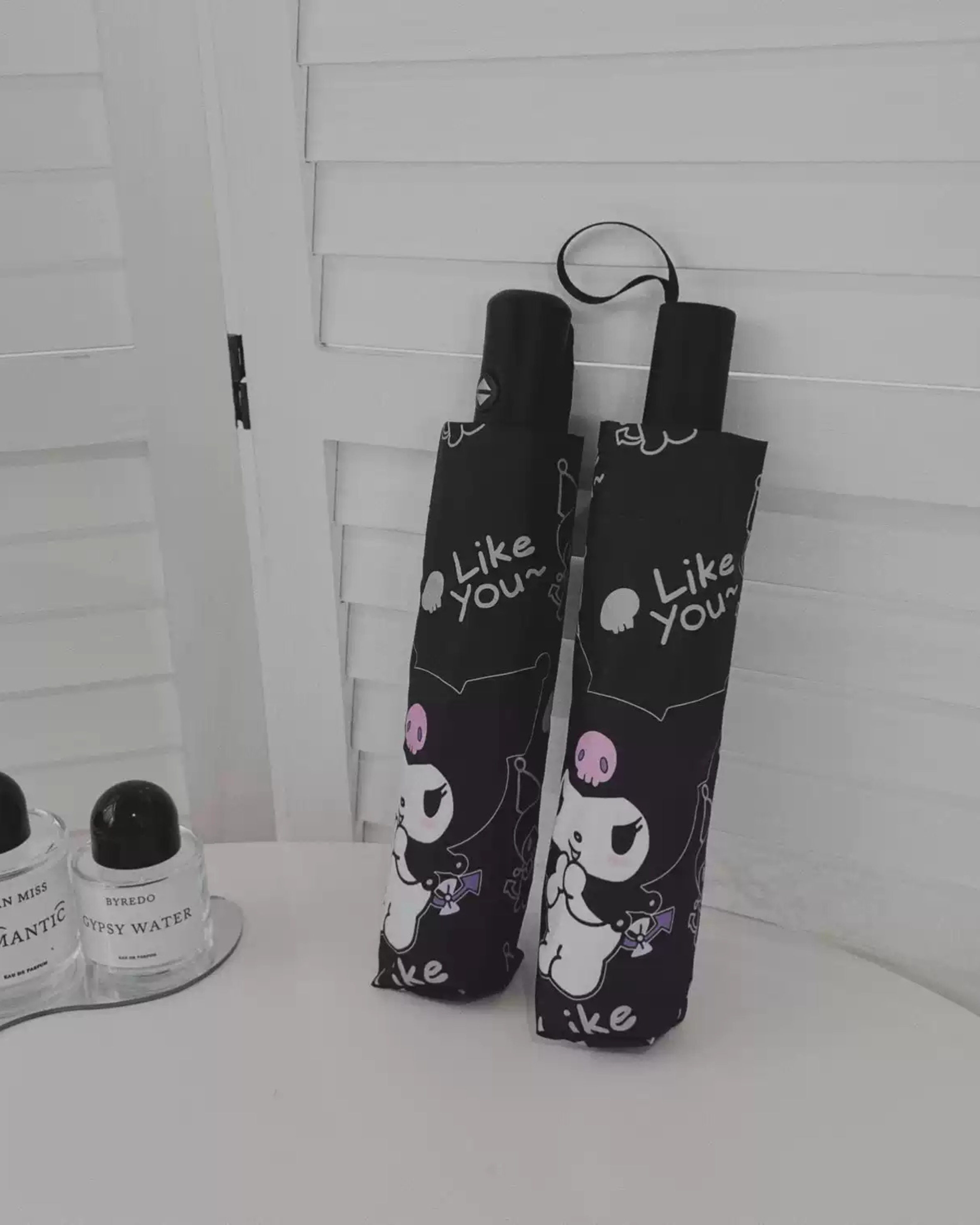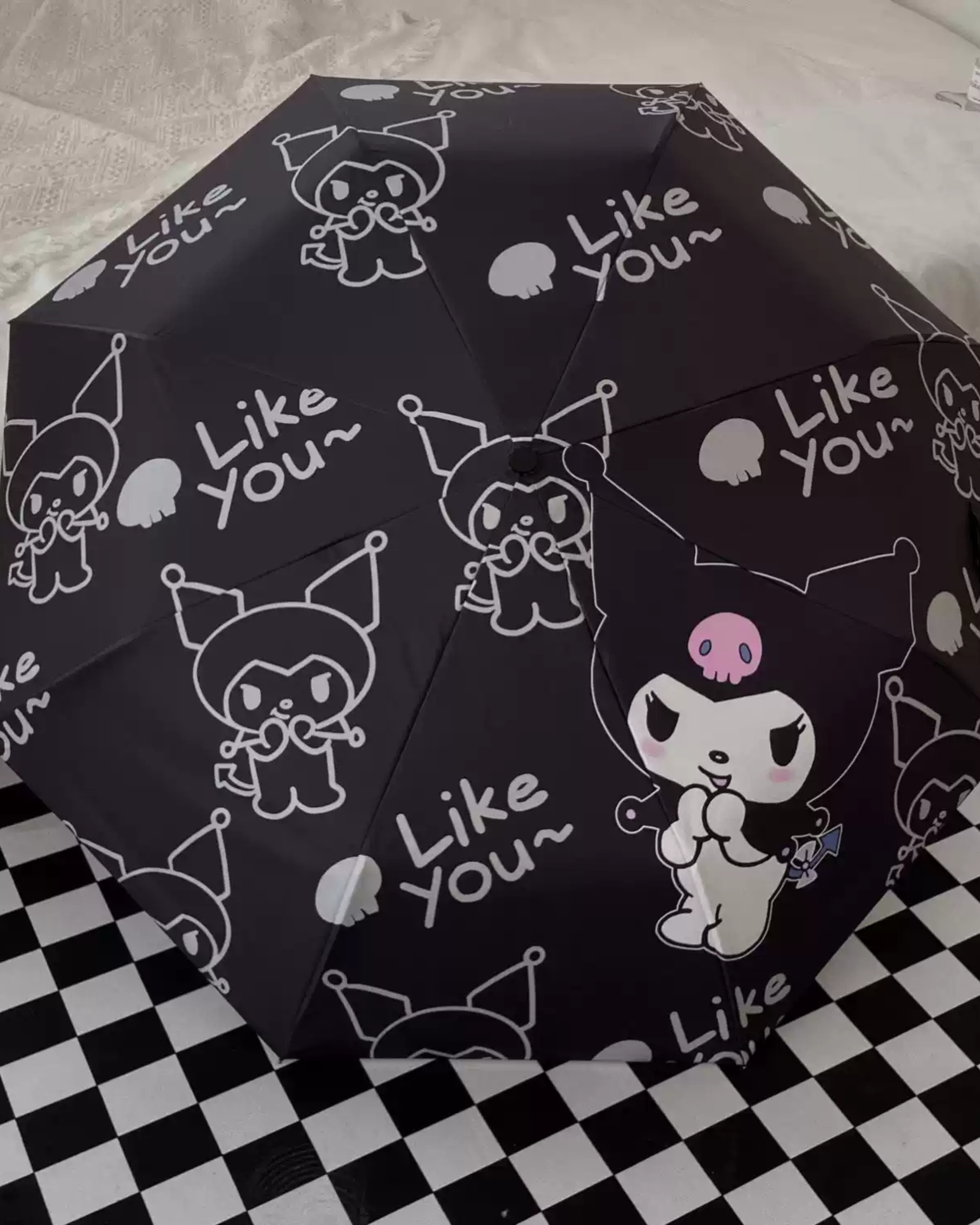 Add a touch of dark elegance to your daily look with this Kuromi-inspired gothic umbrella. Designed with a black UV-protective coating, it effectively blocks harsh sunlight while also keeping you dry on rainy days. The fully automatic open-and-close feature makes it effortless to use, while the chic dark aesthetic gives it a high-fashion, edgy charm. Lightweight, durable, and beautifully designed, this umbrella is perfect for stylish girls who love unique, statement accessories. A must-have for both sunny and rainy days.