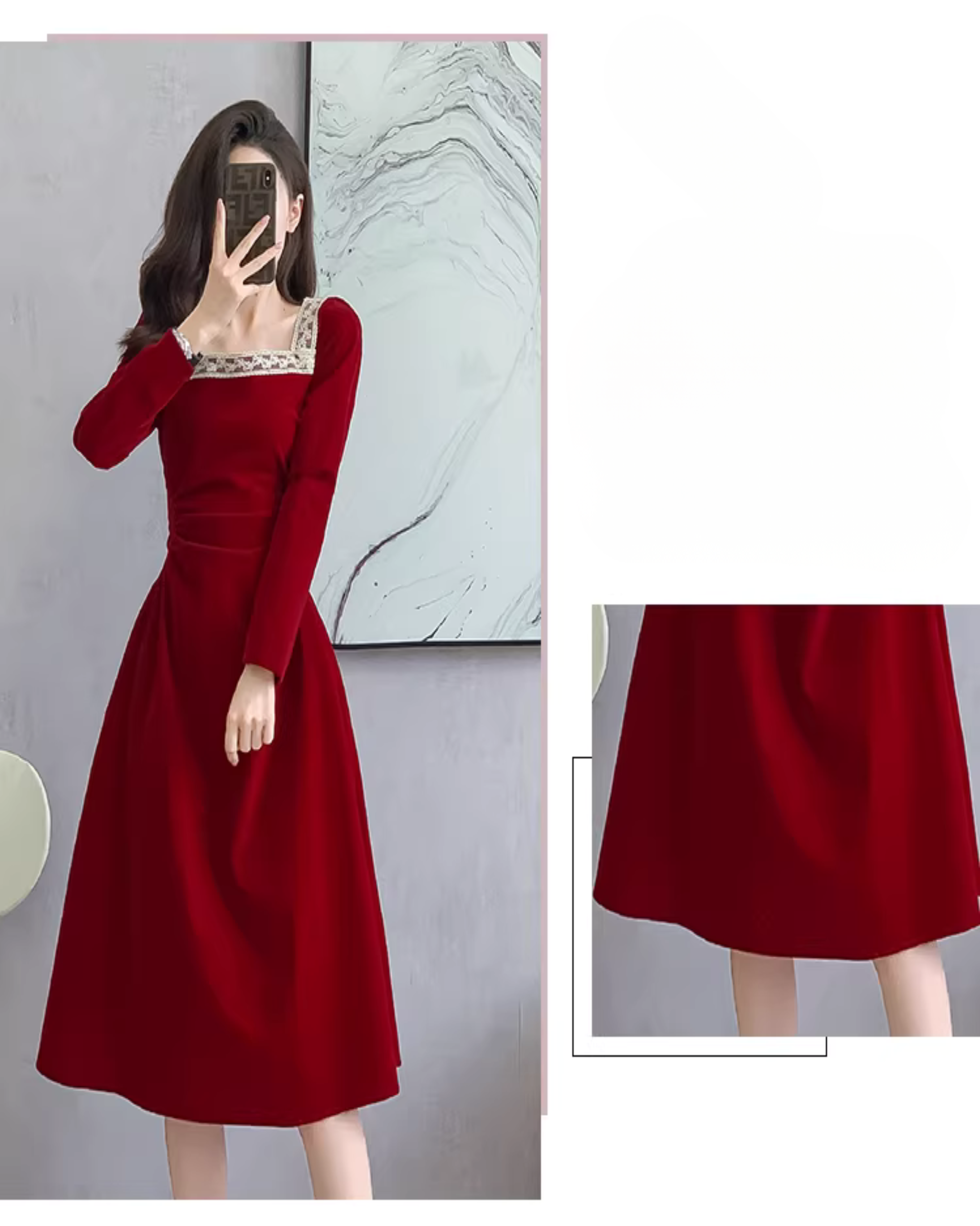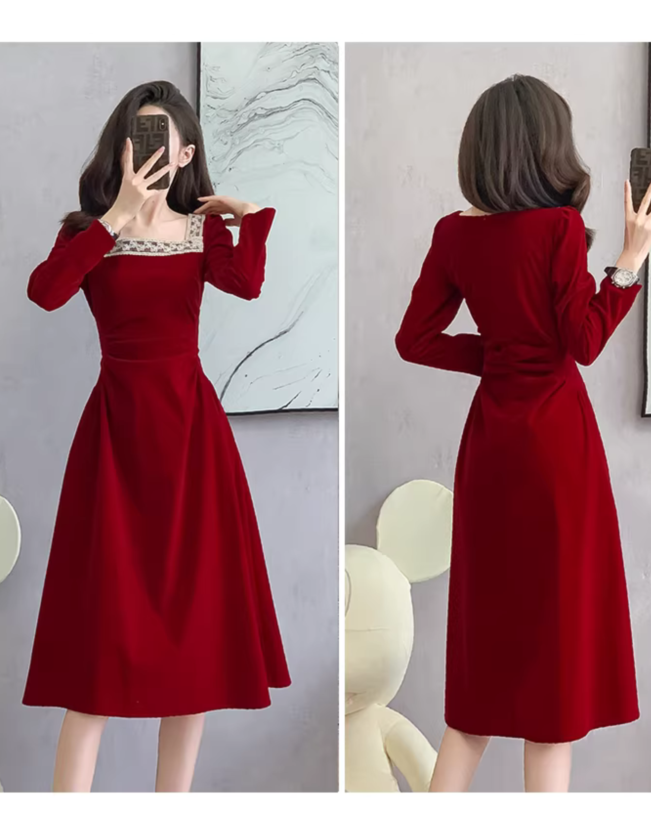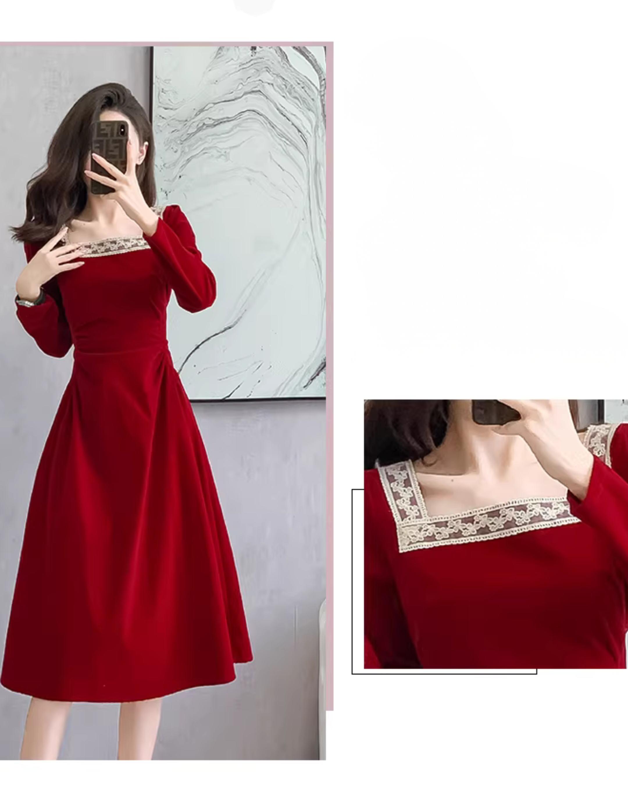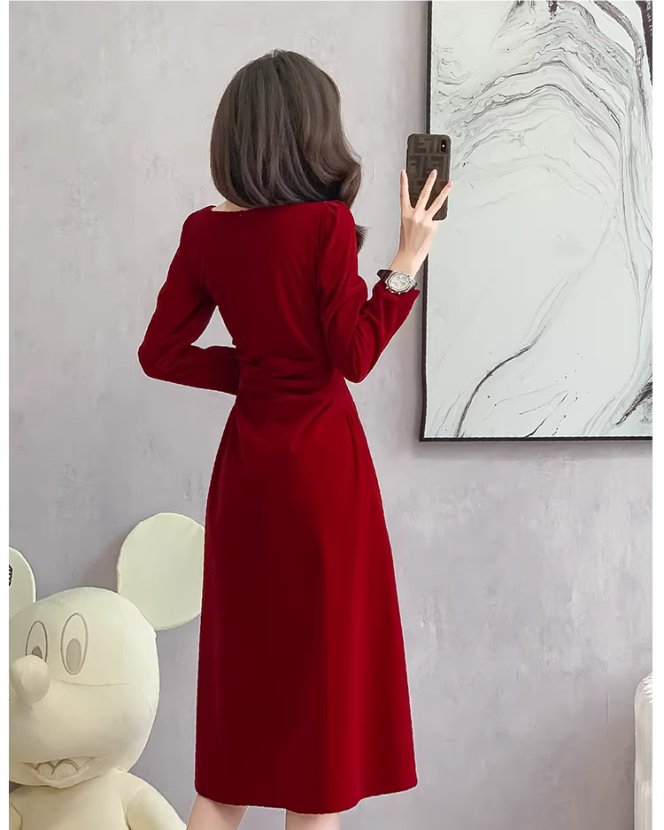 The rich wine-red colour symbolises love and elegance, making it perfect for autumn and winter celebrations. Ideal for weddings, engagements, banquets, evening parties, and formal occasions, this dress delivers a timeless luxury look with a feminine and romantic touch.