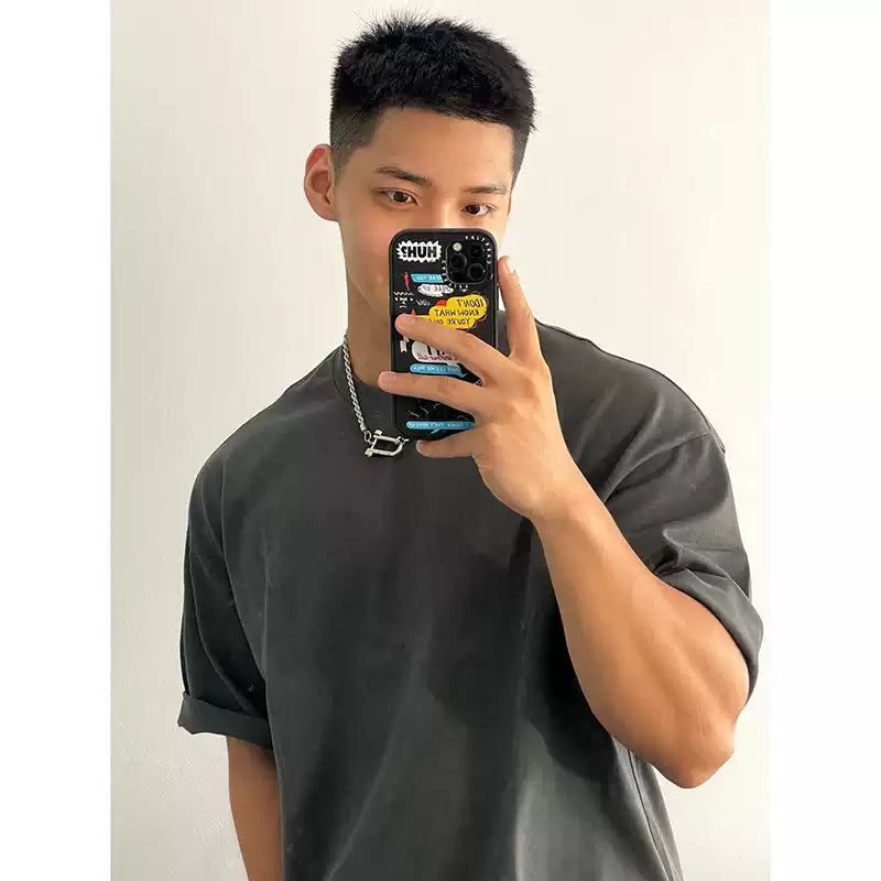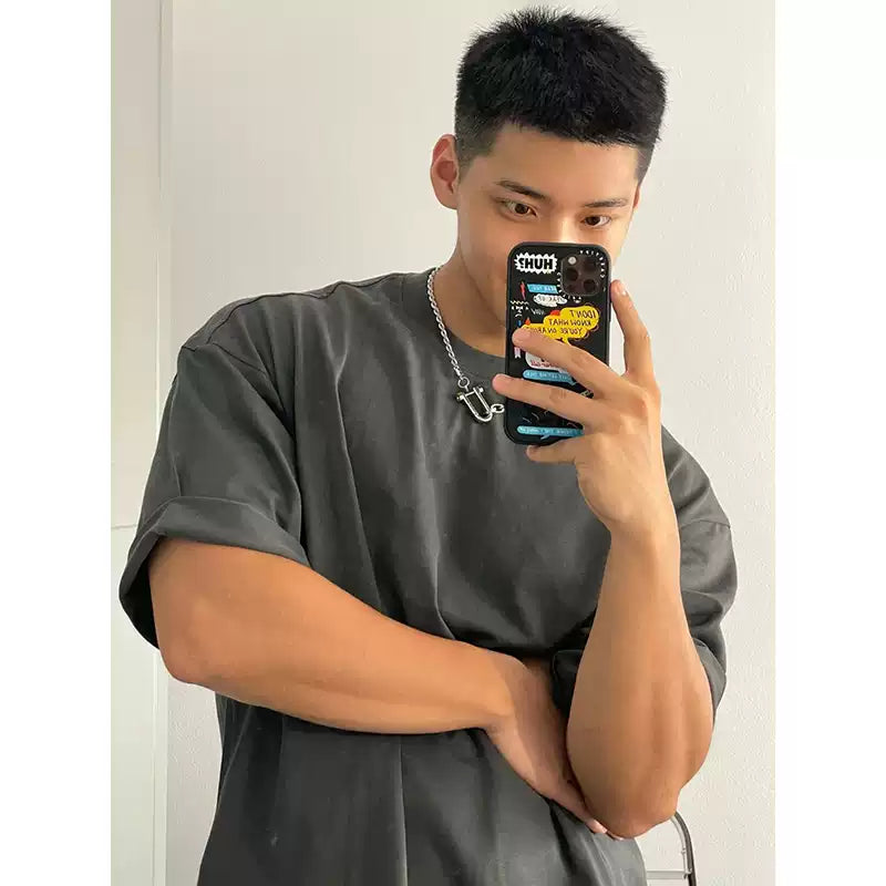 Elevate your everyday style with this men's heavyweight vintage t-shirt in dark gray, made from 100% pure cotton for comfort, durability, and a structured fit. Designed with a loose, oversized silhouette and drop shoulders, it brings a clean retro vibe to any outfit.