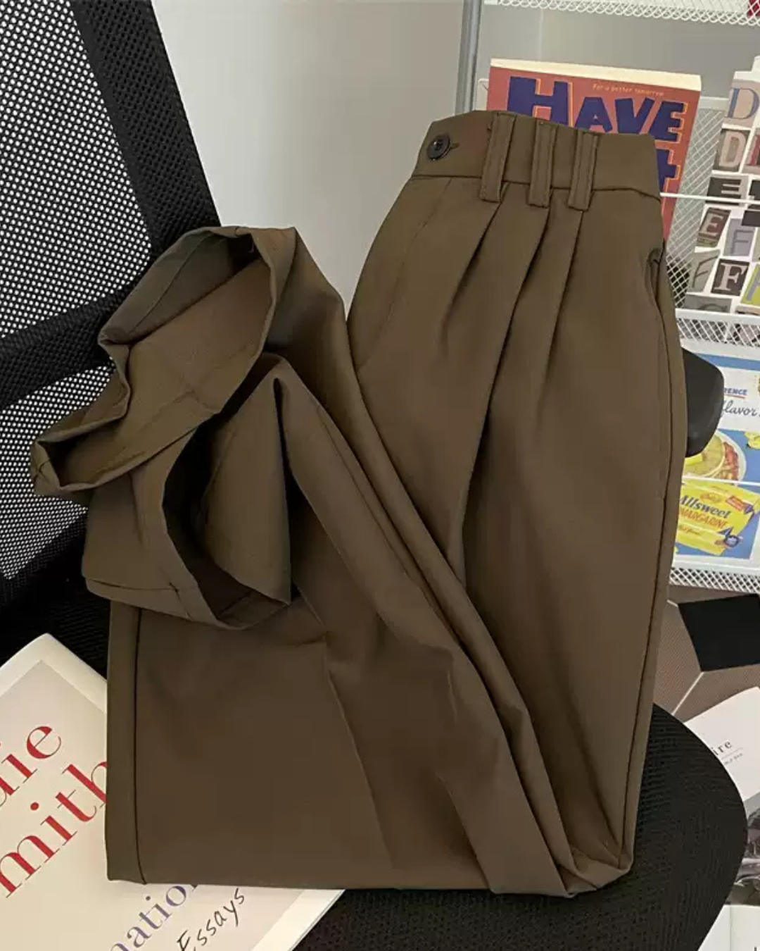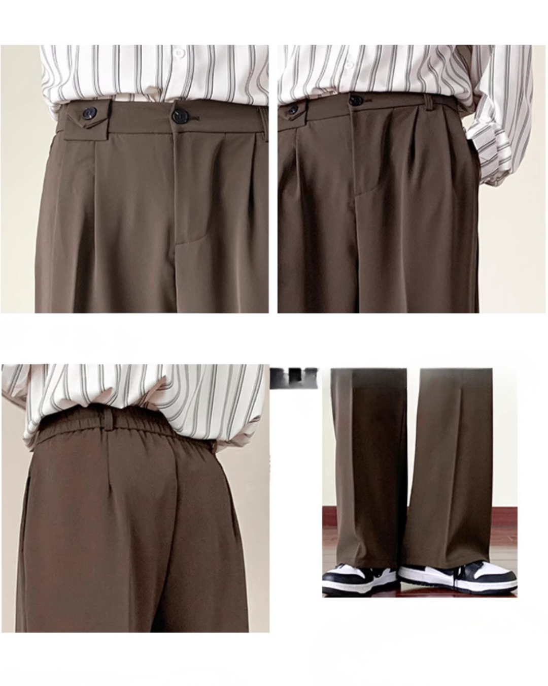 These straight-leg suit pants combine a clean Hong Kong aesthetic with a smooth drape for a sleek, modern look. The lightweight fabric falls naturally, giving a refined silhouette that feels both relaxed and polished. Easy to style with casual or semi-formal outfits, they bring effortless charm and everyday versatility while keeping the fit comfortable and flattering.