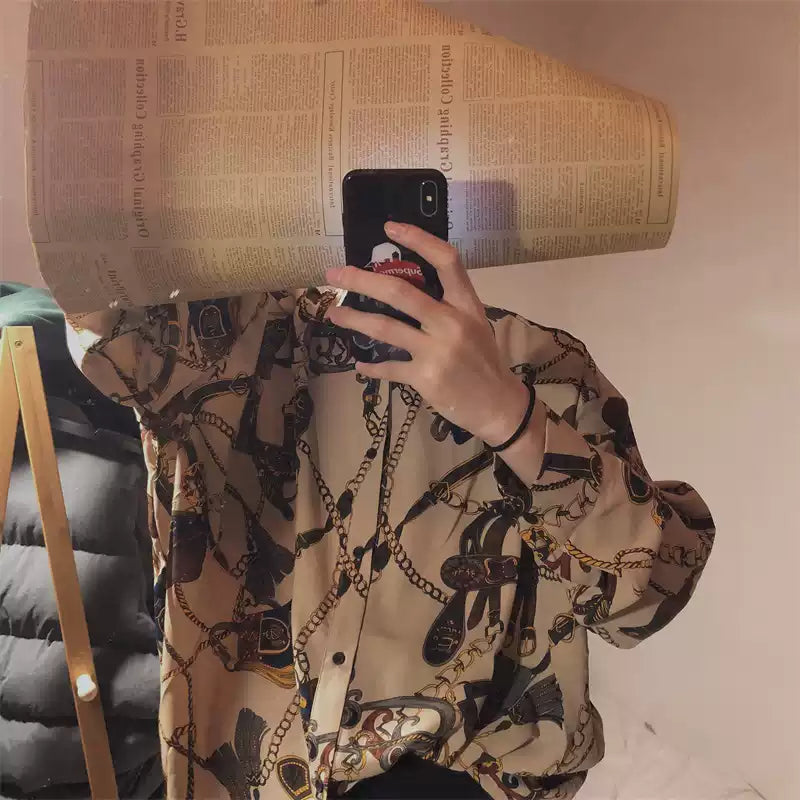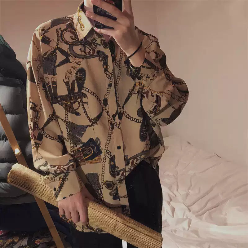 The all-over chain pattern adds a touch of retro flair, while the lightweight fabric keeps the look effortless and breathable. Perfect for styling with wide-leg pants, cargo shorts, or layered with a plain tee, this shirt delivers standout character with everyday versatility.