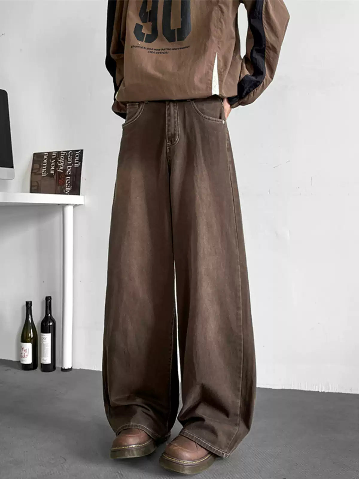 Bring back bold vintage style with the Cleanfit Men's Brown Wide-Leg Jeans – a perfect combination of rugged design and laid-back streetwear vibes. These washed denim jeans feature a loose, relaxed fit with a straight, floor-length cut that delivers a statement look without sacrificing comfort.