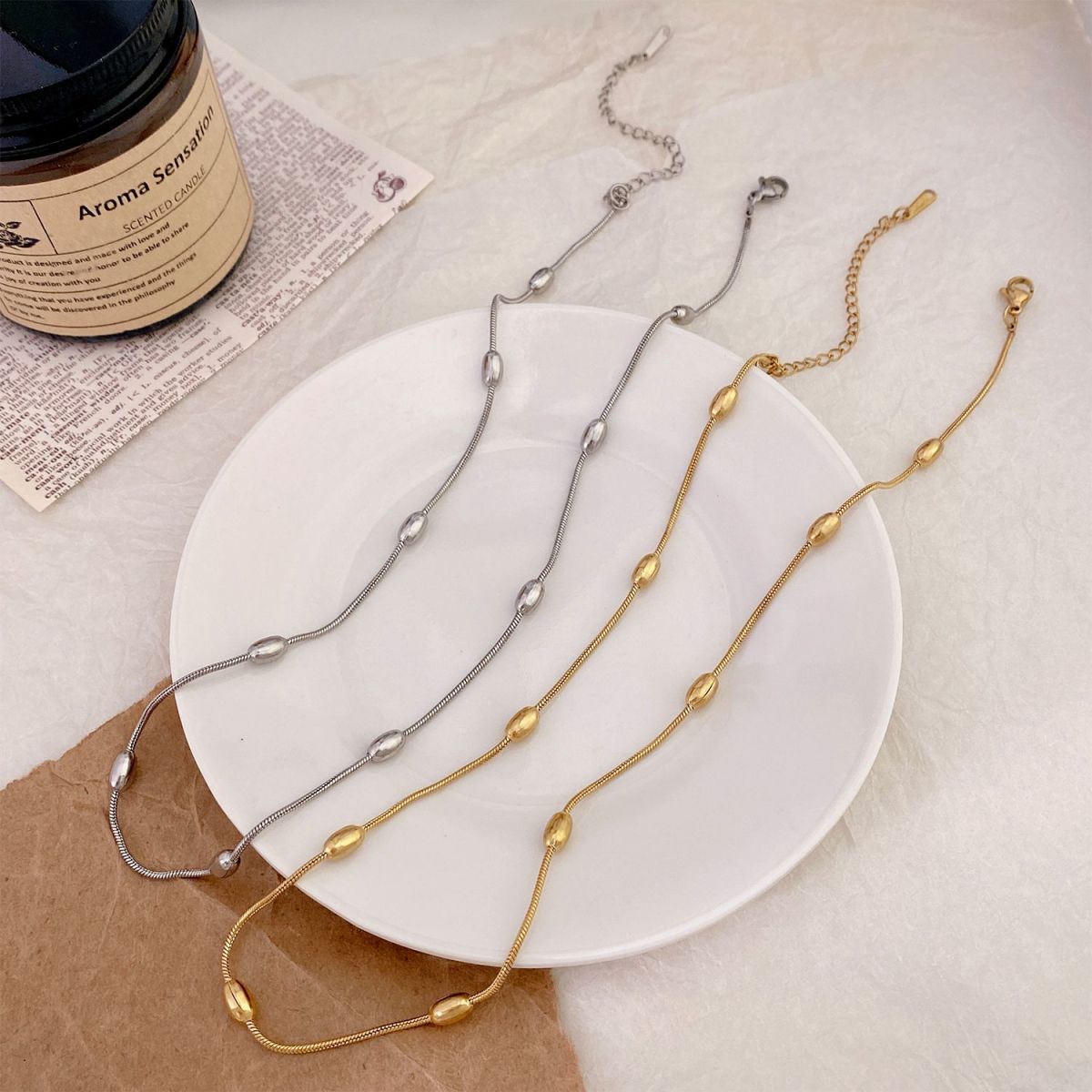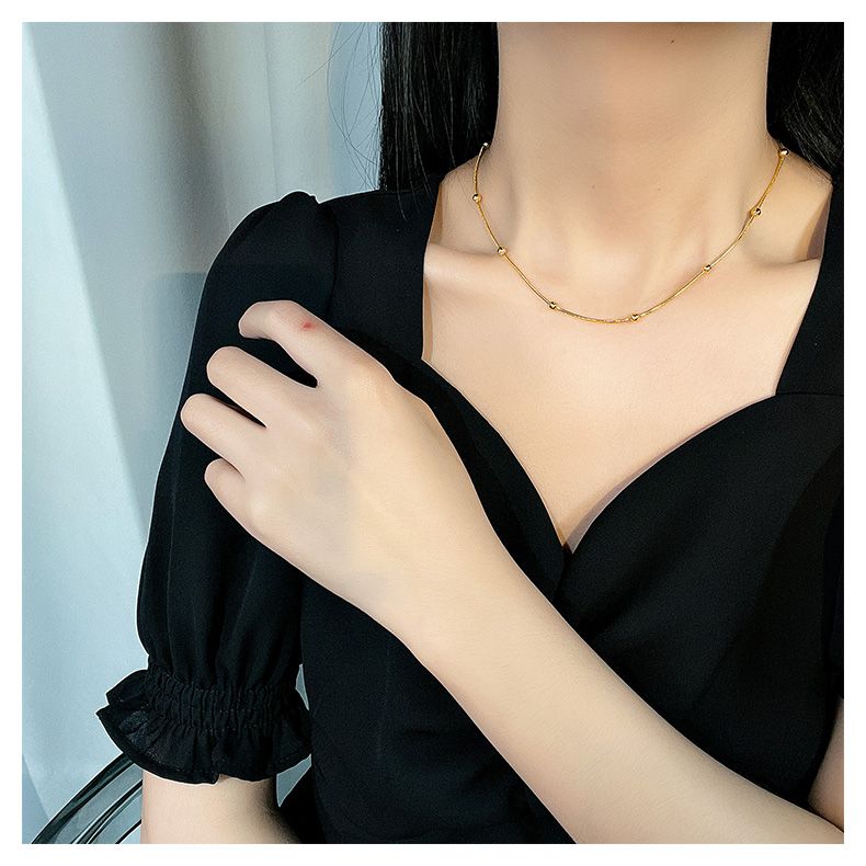 This titanium steel chain necklace features a clean, understated design with a cool, modern edge. Crafted with a smooth, polished finish, it sits neatly along the collarbone as a short choker style, highlighting the neckline with subtle strength and elegance. The sturdy chain structure offers durability while maintaining a lightweight, comfortable feel. With its vintage-inspired tone and minimalist character, this necklace is easy to style and adds refined attitude to everyday outfits.