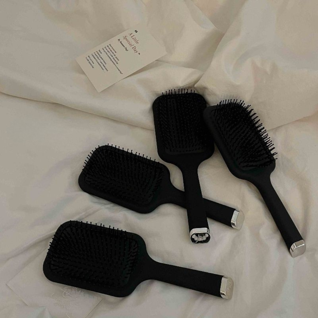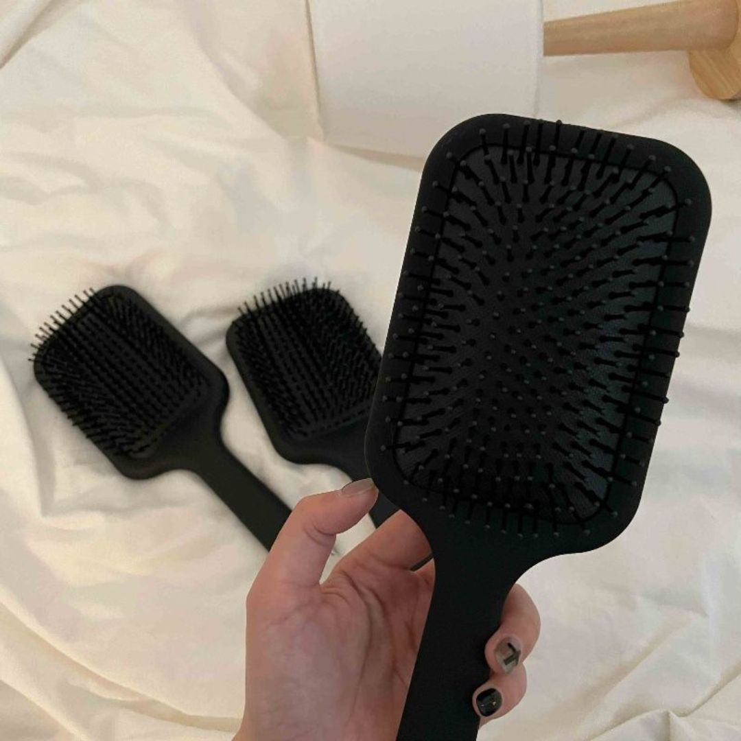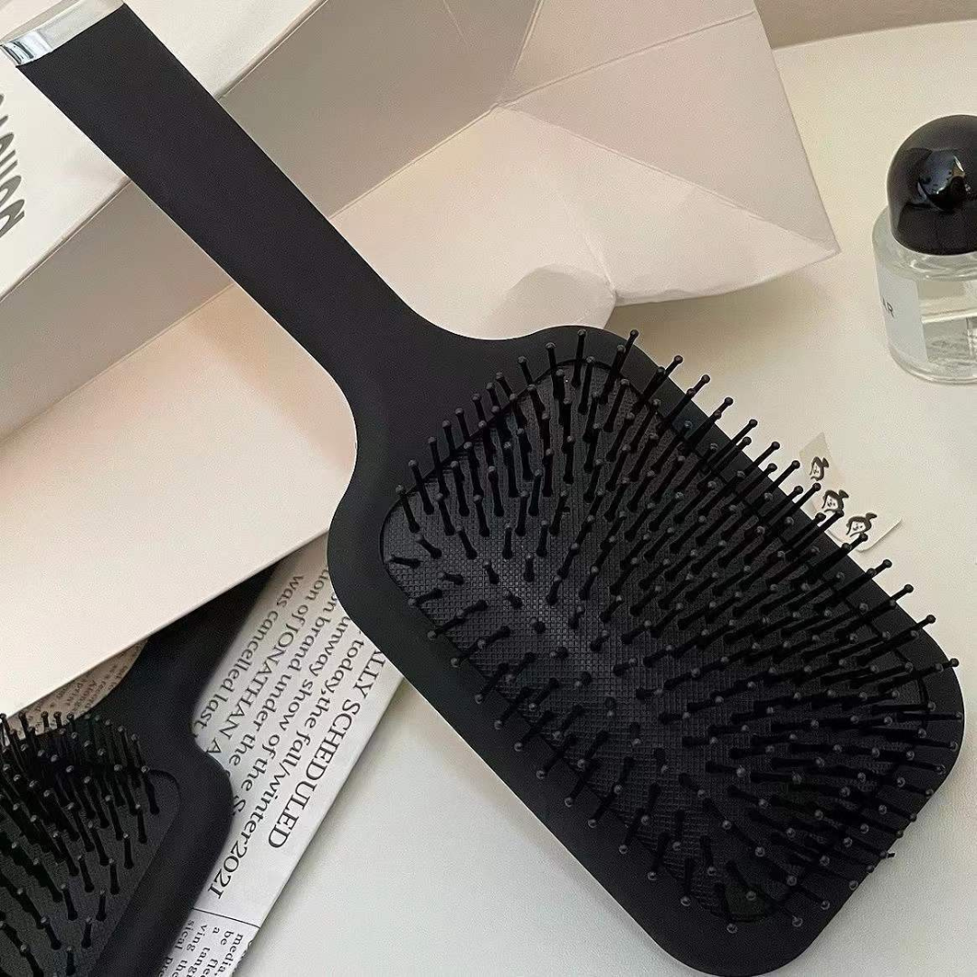 This minimalist black air cushion hairbrush is designed for gentle detangling and daily care. Featuring a wide paddle design and soft air cushion base, it massages the scalp without pulling or damaging hair. Perfect for reducing static and frizz, it's ideal for home use or on-the-go styling. Lightweight, portable, and stylish—your new go-to brush for smooth, healthy hair.