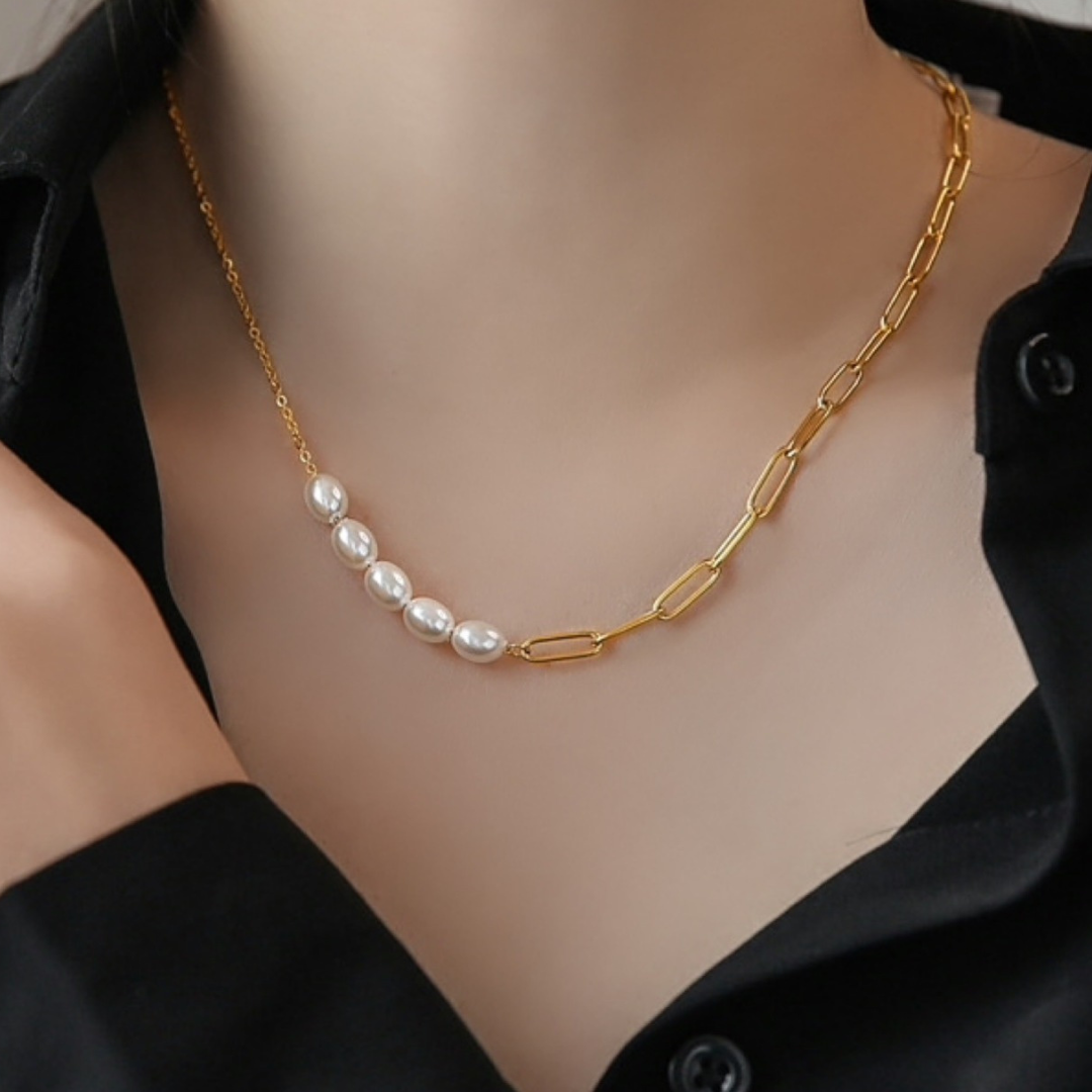 Elevate your style with this chic necklace set featuring a unique blend of pearl accents, plaid details, and an irregular teardrop pendant. Crafted from titanium steel for long-lasting shine and fade resistance, this set perfectly embodies minimalist elegance. Ideal for everyday wear or as a statement piece for fashion-forward looks.