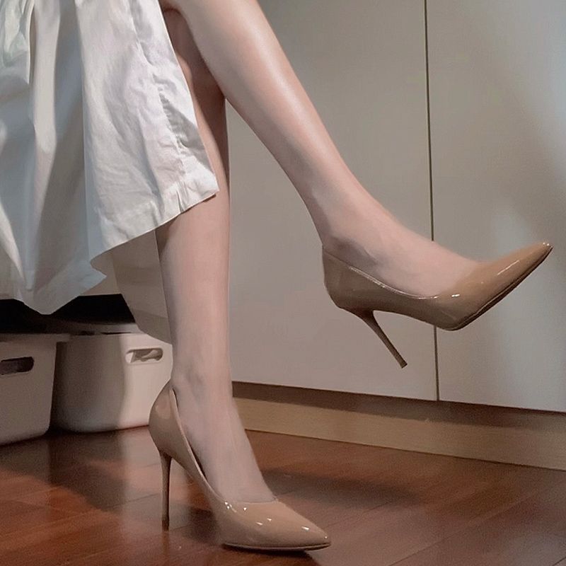 Expertly crafted from patent leather, these nude high-heeled stiletto heels exude sophistication and elegance. The sleek design and classic black color make them a great addition to any wardrobe, perfect for adding a touch of style to any outfit. Elevate your look with these timeless heels.
