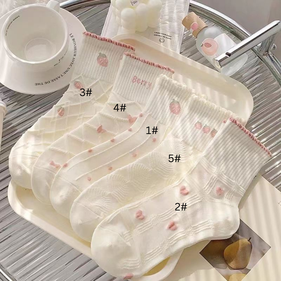 These adorable pink mid-calf socks are perfect for the fall and winter seasons. Featuring a cute, sweet design, they are inspired by Korean fashion and Japanese style, making them a versatile and trendy addition to any wardrobe. Whether you're sporting a casual look or a sporty vibe, these socks offer both comfort and style. Ideal for everyday wear, these socks will keep you cozy while enhancing your outfit with a touch of sweetness.