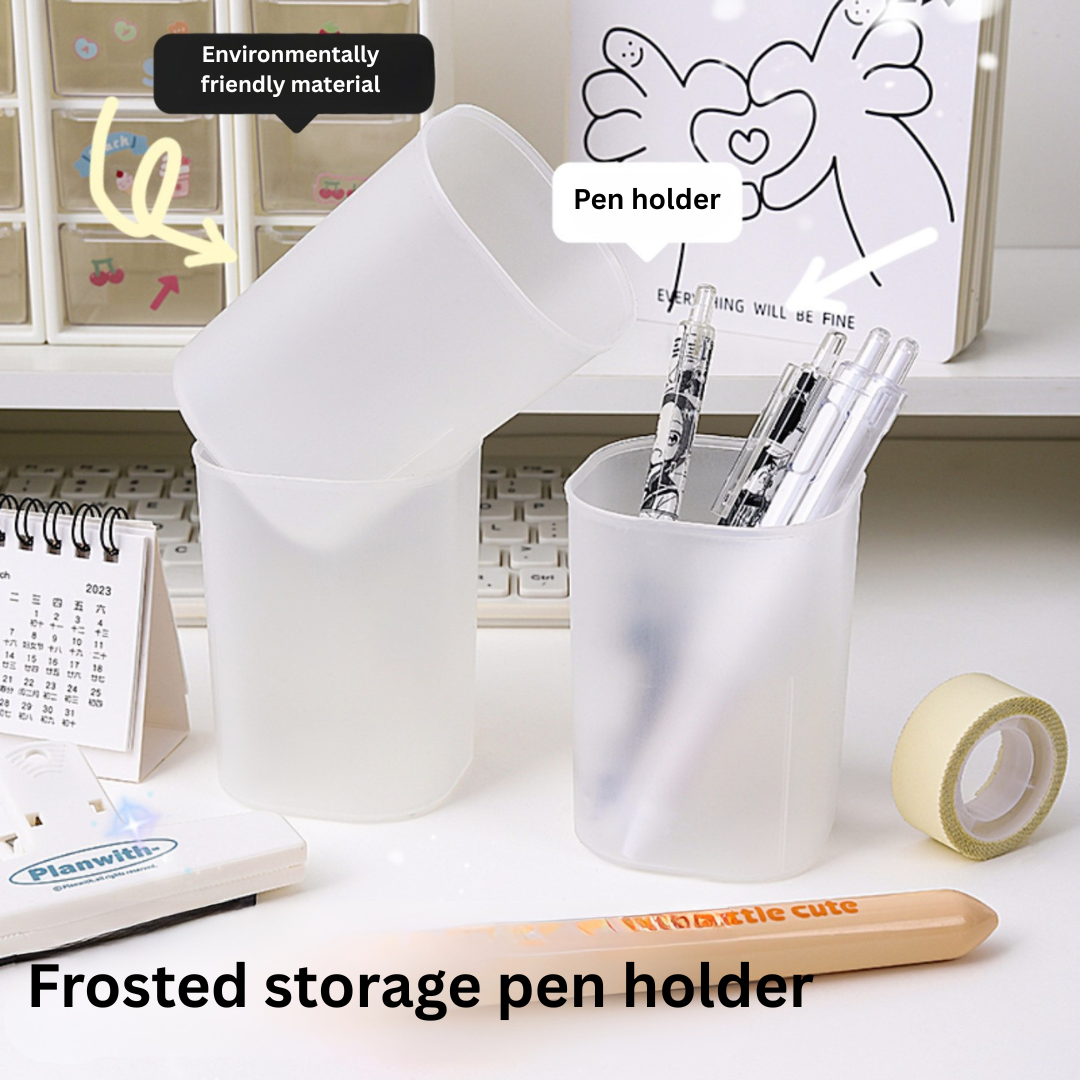 Keep your desk neat and organized with this round transparent frosted pen holder. Designed for students and stationery lovers, its multi-kinetic storage function accommodates pens, pencils, and other essentials with ease. The simple yet high-value INS-inspired design adds a modern touch to any study or workspace. Durable, lightweight, and perfect for creating a clean, aesthetic desk setup.