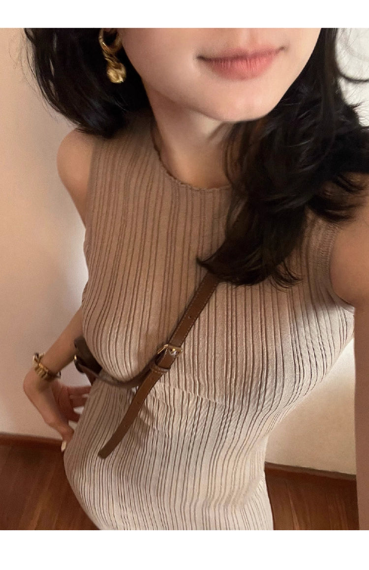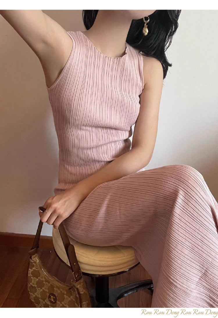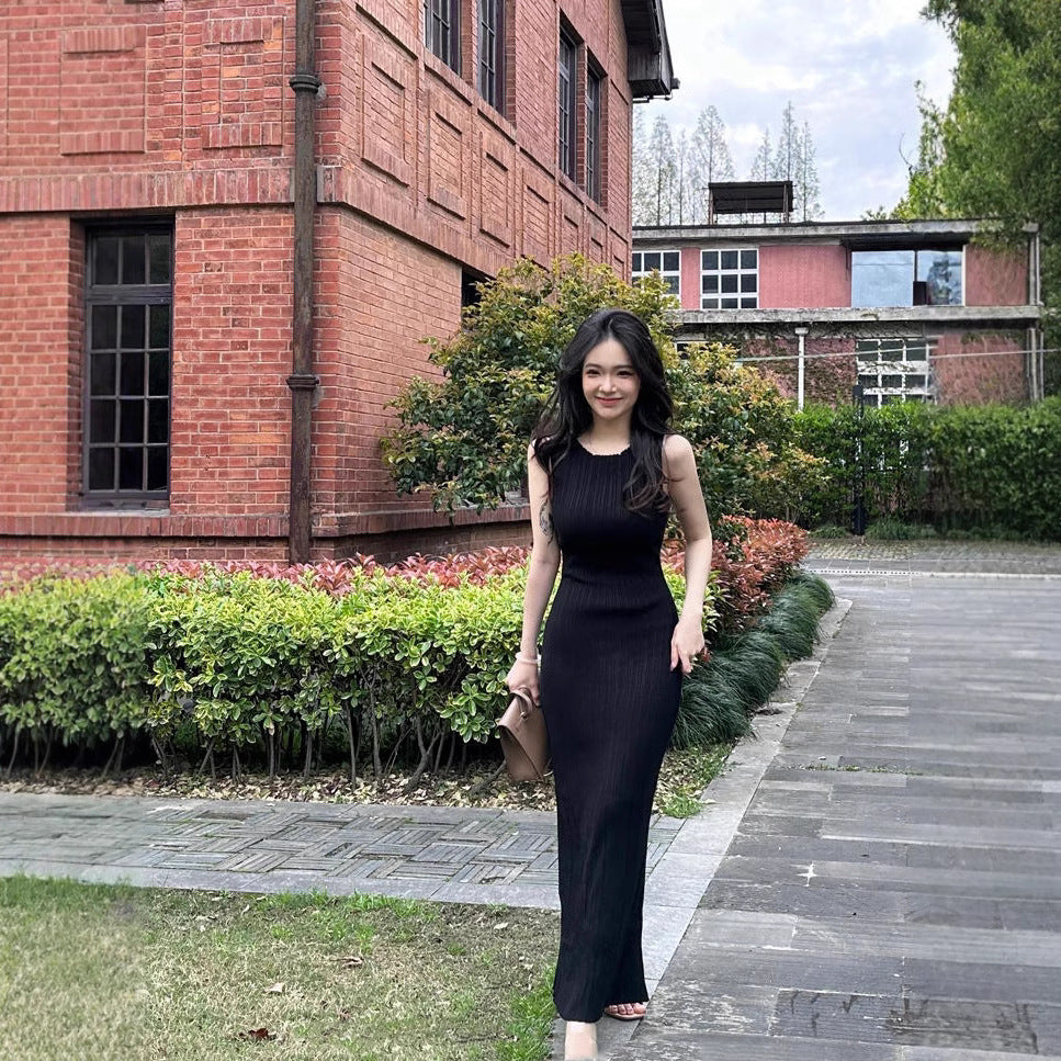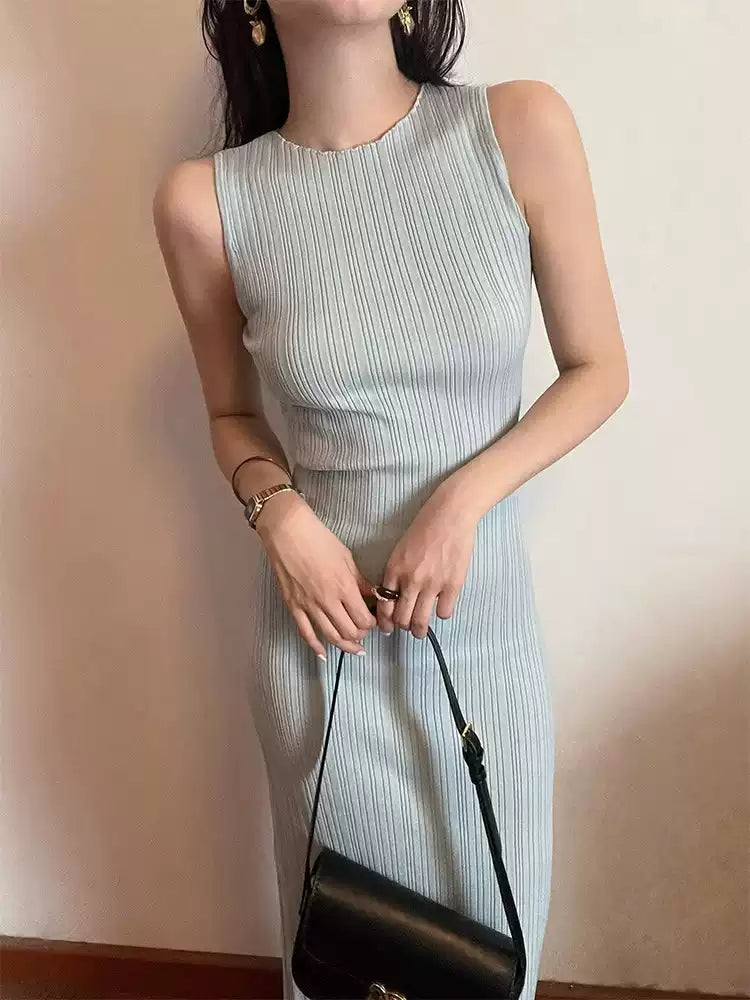 This sleeveless bodycon dress exudes confidence and elegance with its figure-hugging silhouette and side slit design. The fitted waist highlights natural curves, while the smooth fabric enhances comfort and movement. Perfect for both casual outings and evening occasions, it’s a timeless piece that effortlessly enhances feminine charm and sophistication.