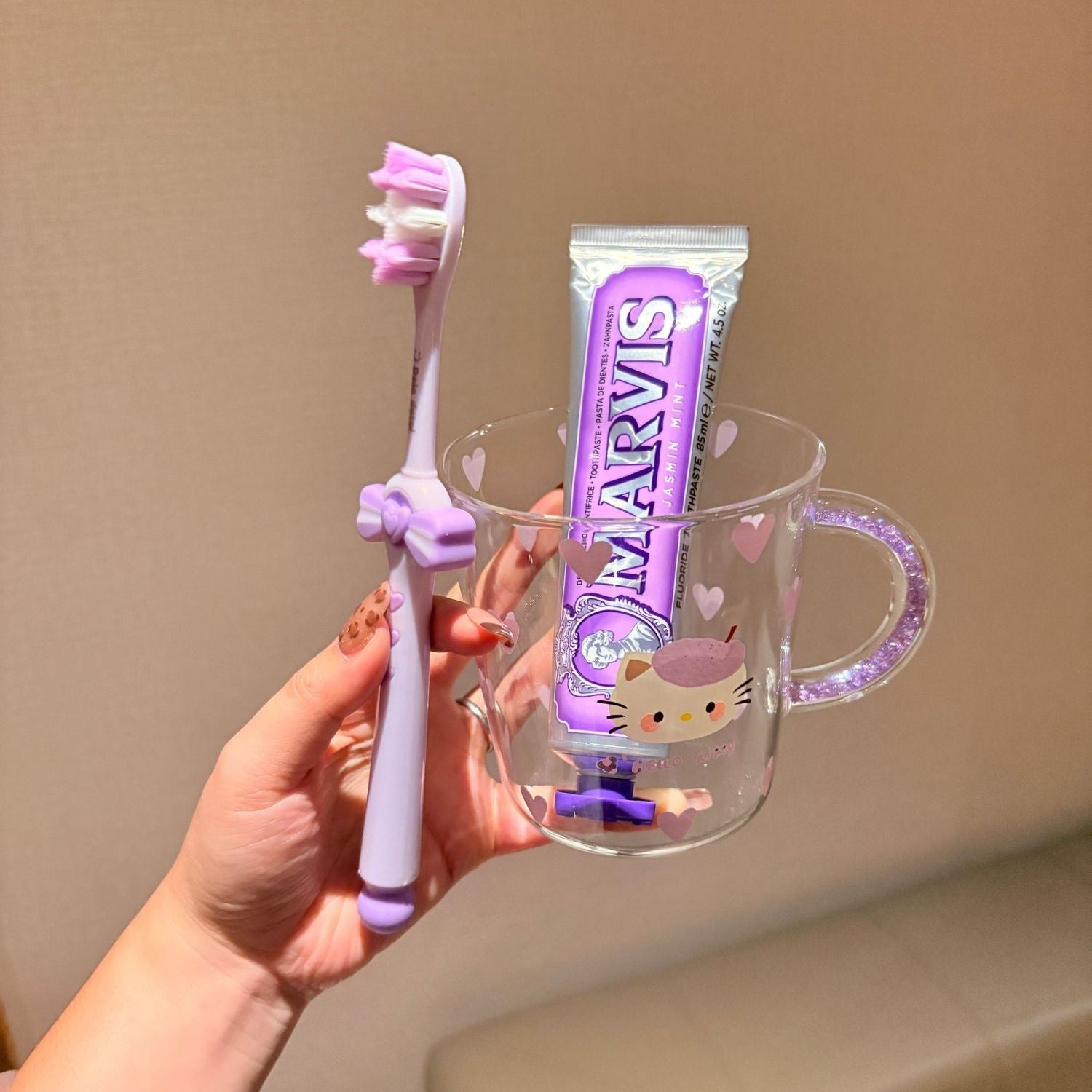This soft bristle toothbrush features ultra-fine bristles designed for a gentle and thorough clean, helping reduce gum pressure while effectively removing plaque. The antibacterial bristles support better hygiene, and the dense bristle layout provides a comfortable brushing experience. The handle includes a cute bow-inspired design with an anime-style aesthetic, offering both functionality and visual appeal. Lightweight and easy to hold, this toothbrush is suitable for daily use and makes a fun, practical choice for individuals or matching sets.