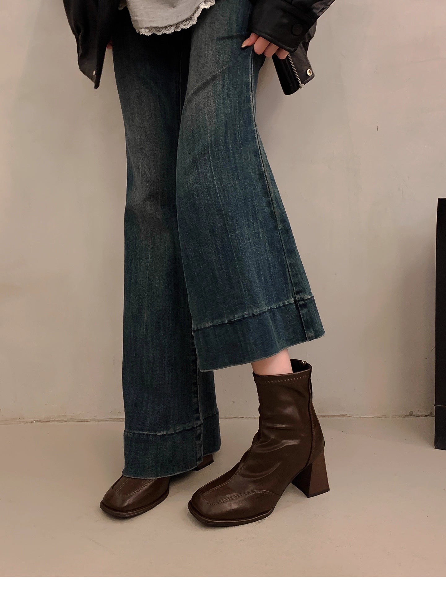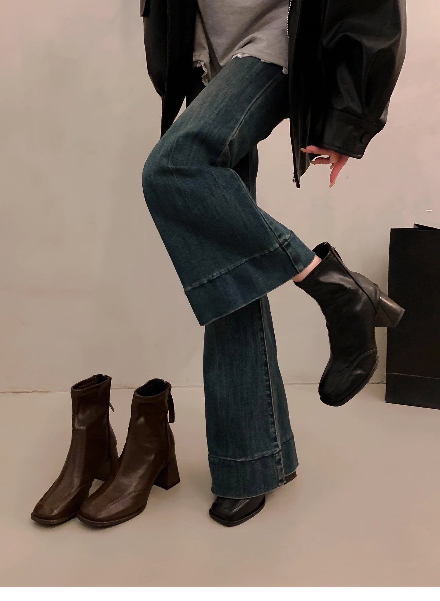 These elegant square toe ankle boots feature a sleek stretch-fit design that flatters the leg line. The soft, flexible material offers comfort while maintaining a refined silhouette. A convenient back zipper ensures easy wear, and the chunky high heel adds height with stability. Perfect for pairing with dresses, skirts, or slim pants, these boots bring effortless French elegance to any outfit.