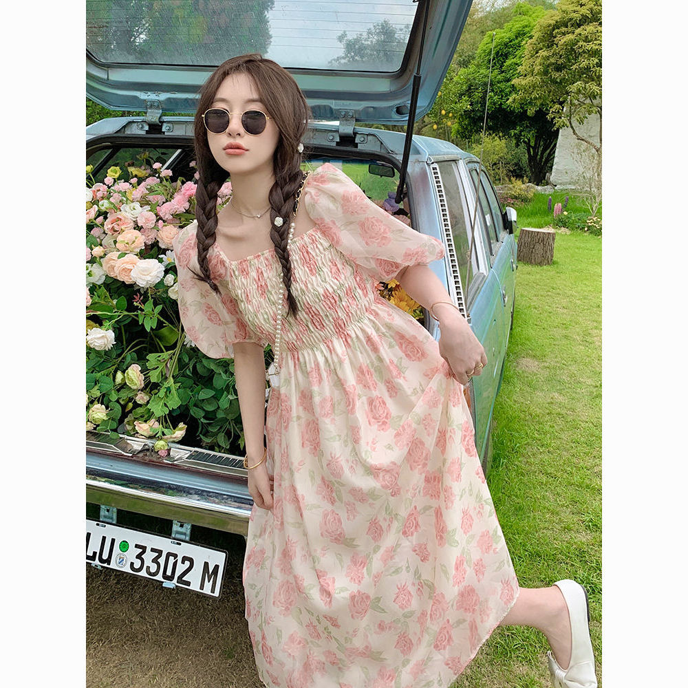 Elevate your summer fashion game with our new French-inspired mid-length dress. Designed for a slim and graceful silhouette, this dress exudes a gentle and feminine charm with its gorgeous floral print in soft pink. Perfect for all occasions, this dress will effortlessly elevate your style.