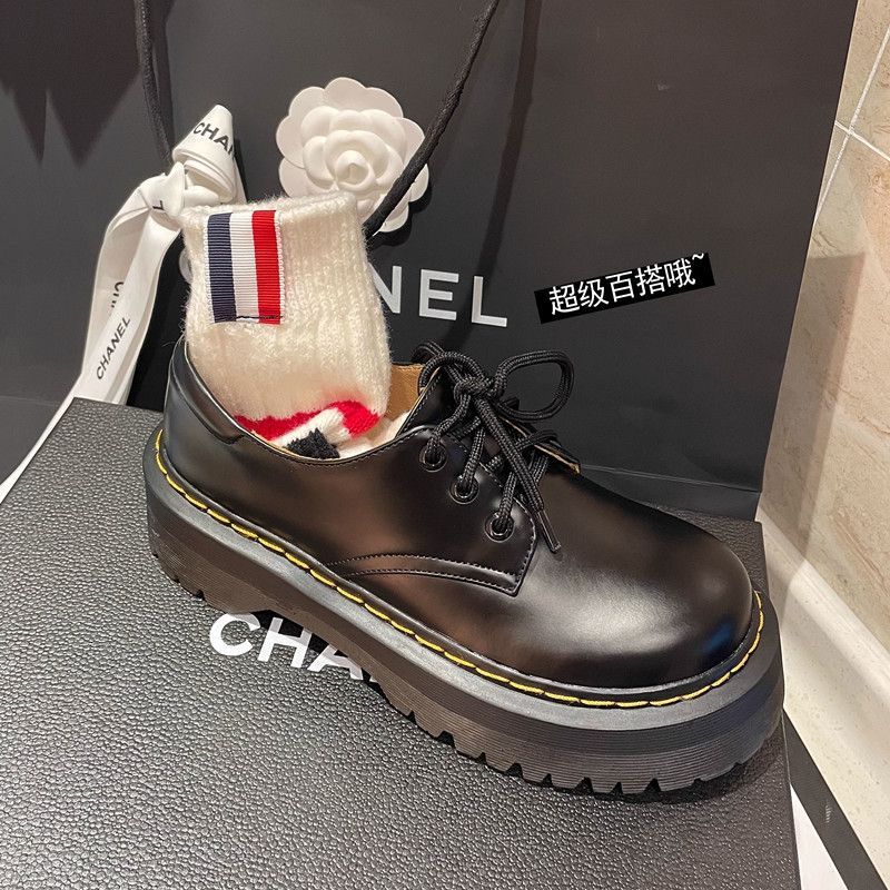 These thick-soled Martin black leather shoes offer a retro British style with a modern twist. The platform design provides added height and support, while the lace-up Mary Jane style offers a secure and comfortable fit. Elevate your wardrobe with these stylish and functional shoes.
