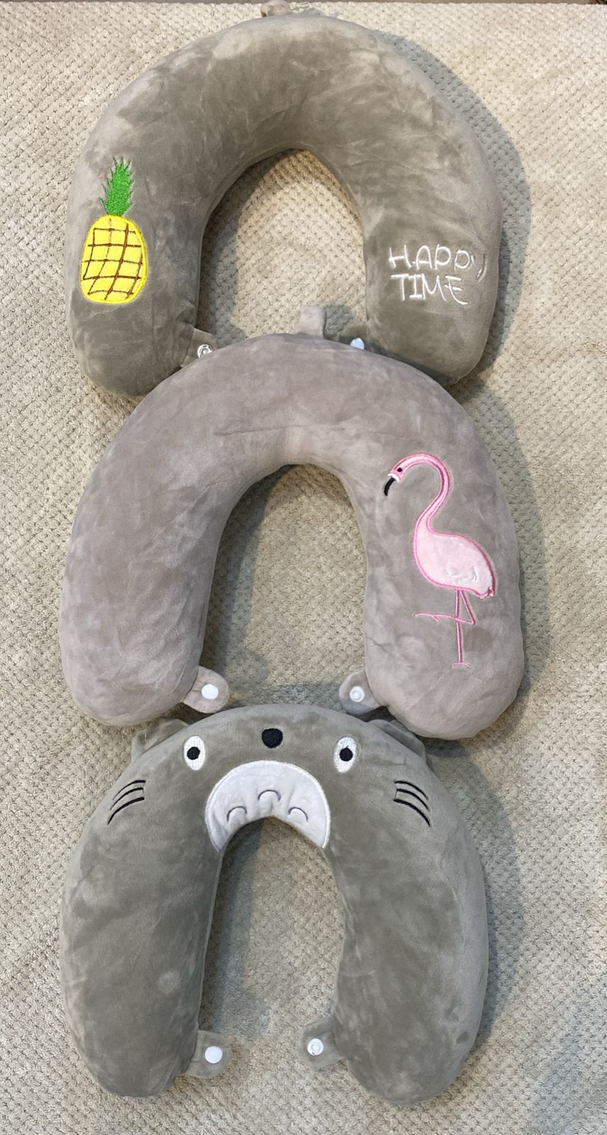 Enjoy relaxing travel moments with this U-shaped soft neck pillow designed for maximum comfort and support. Its ergonomic shape cradles your neck and shoulders, reducing fatigue during long journeys. Made from plush, smooth fabric and filled with soft cushioning, it ensures a cozy experience whether you’re on a plane, car, train, or just relaxing at home. The pillow includes a secure front button to keep it in place and a stylish embroidered design that adds a cheerful touch. Perfect for restful naps anywhere you go.