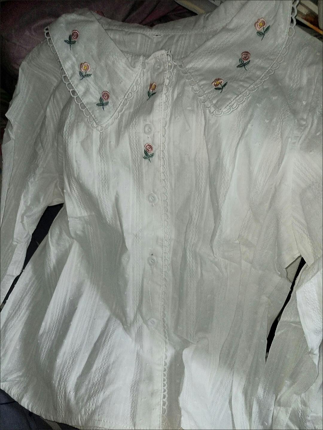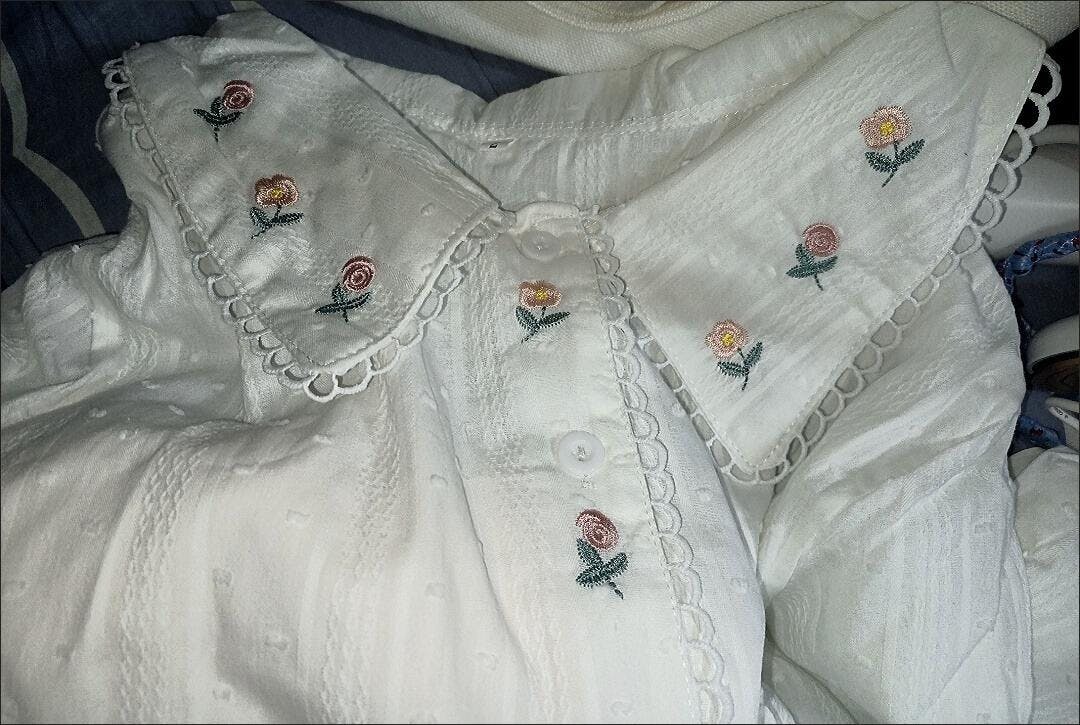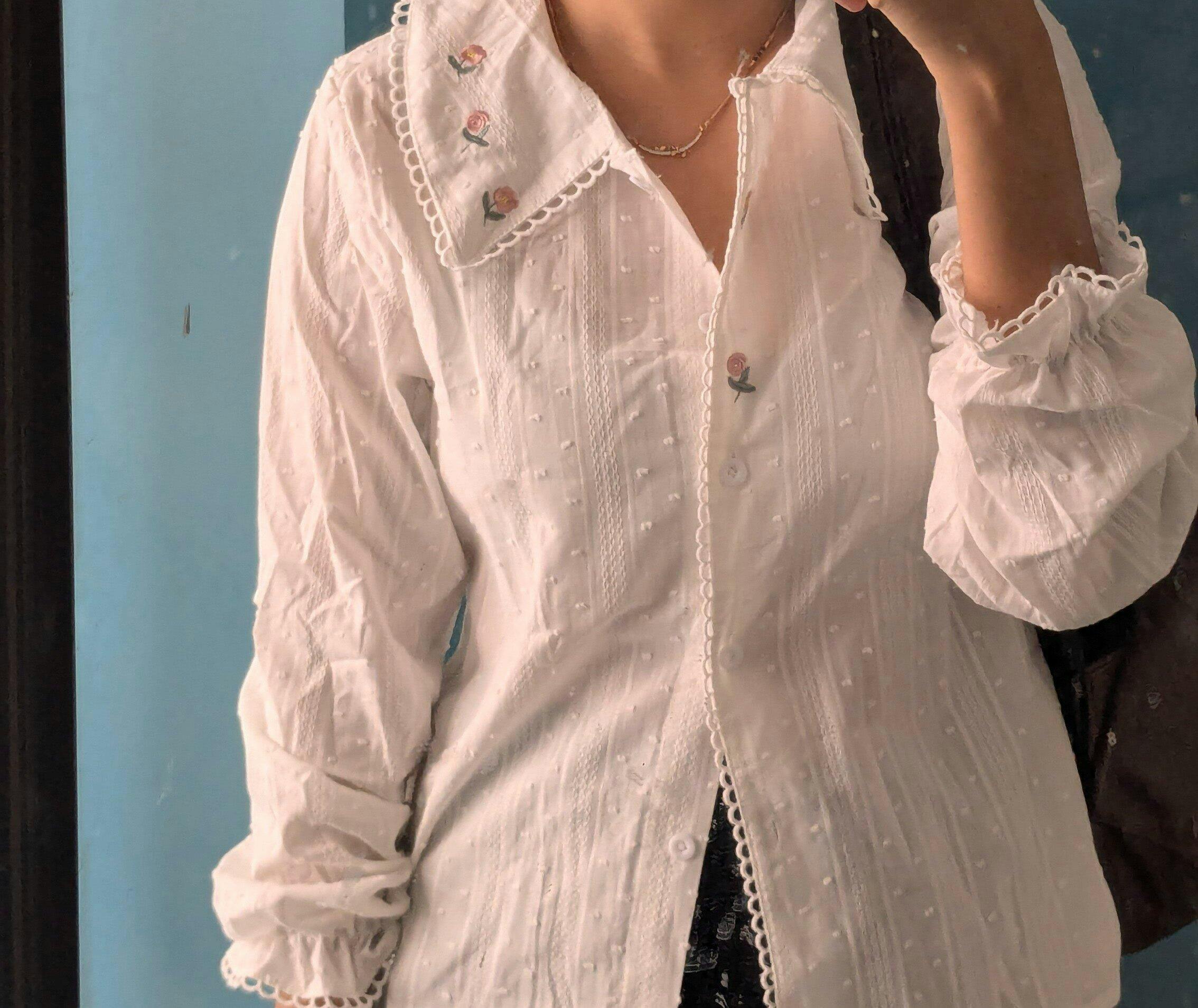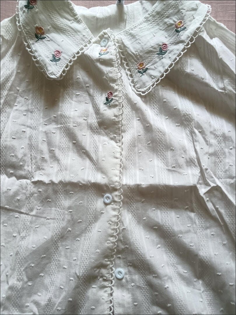 Such a beautiful shirt! The vintage embroidery is so delicate, and the loose fit is perfect for a relaxed look. I adore the soft cotton material, and the Peter Pan collar gives it a cute, feminine touch. It’s a great addition to my wardrobe!