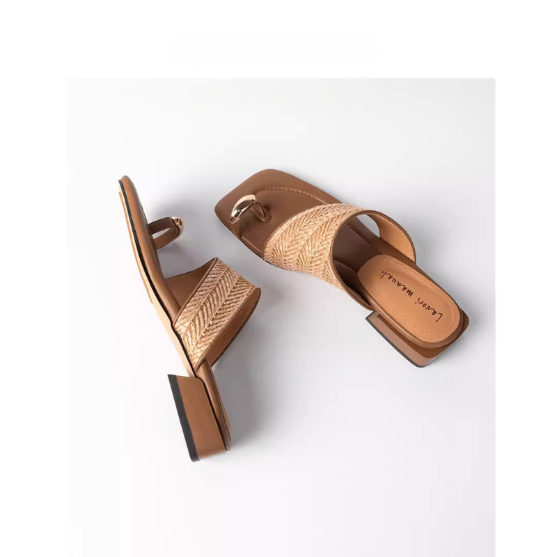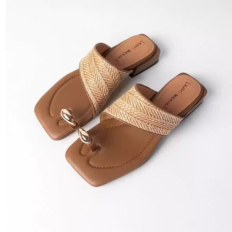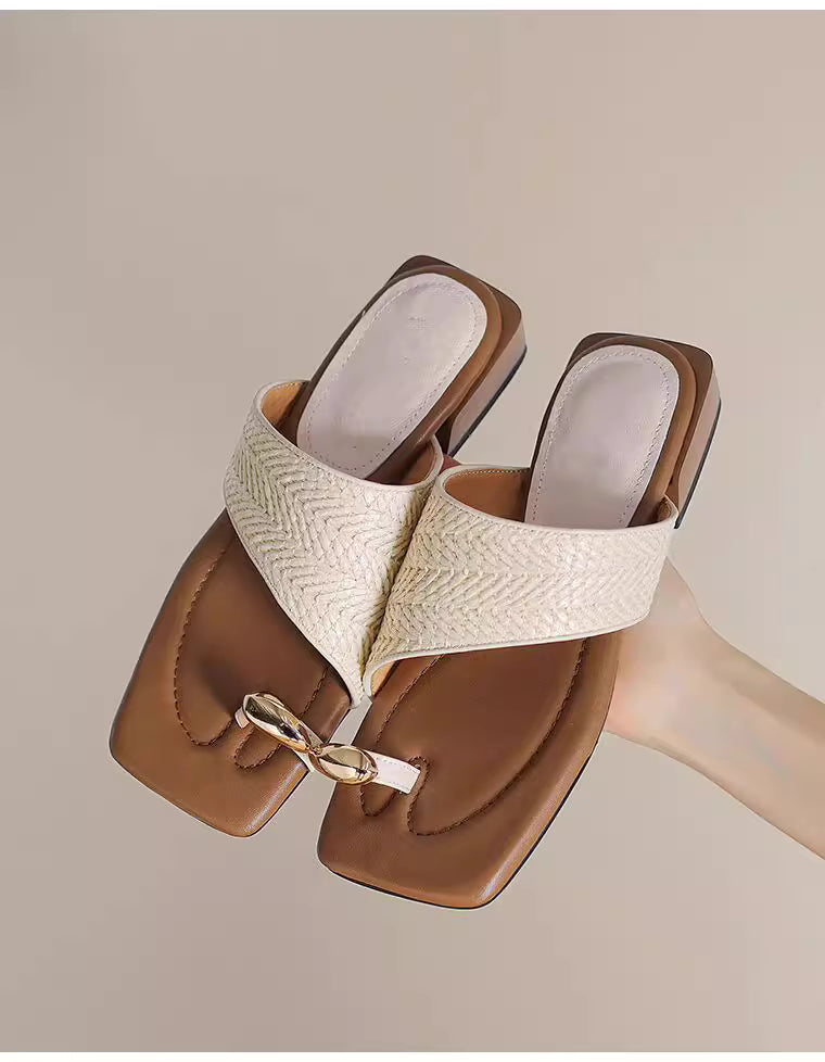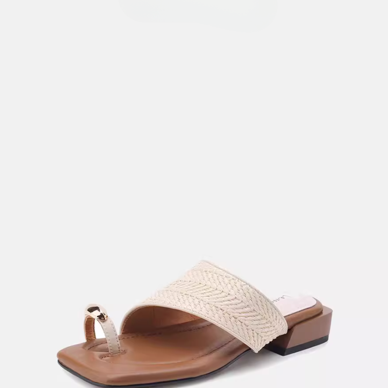 These vintage woven toe ring chunky heel sandals feature a refined blend of comfort and elegance. The handcrafted woven straps and open-toe design create a breezy, feminine look, while the stable chunky heel adds both height and ease. Perfect for pairing with dresses or casual outfits, they offer a chic balance of retro charm and modern simplicity.