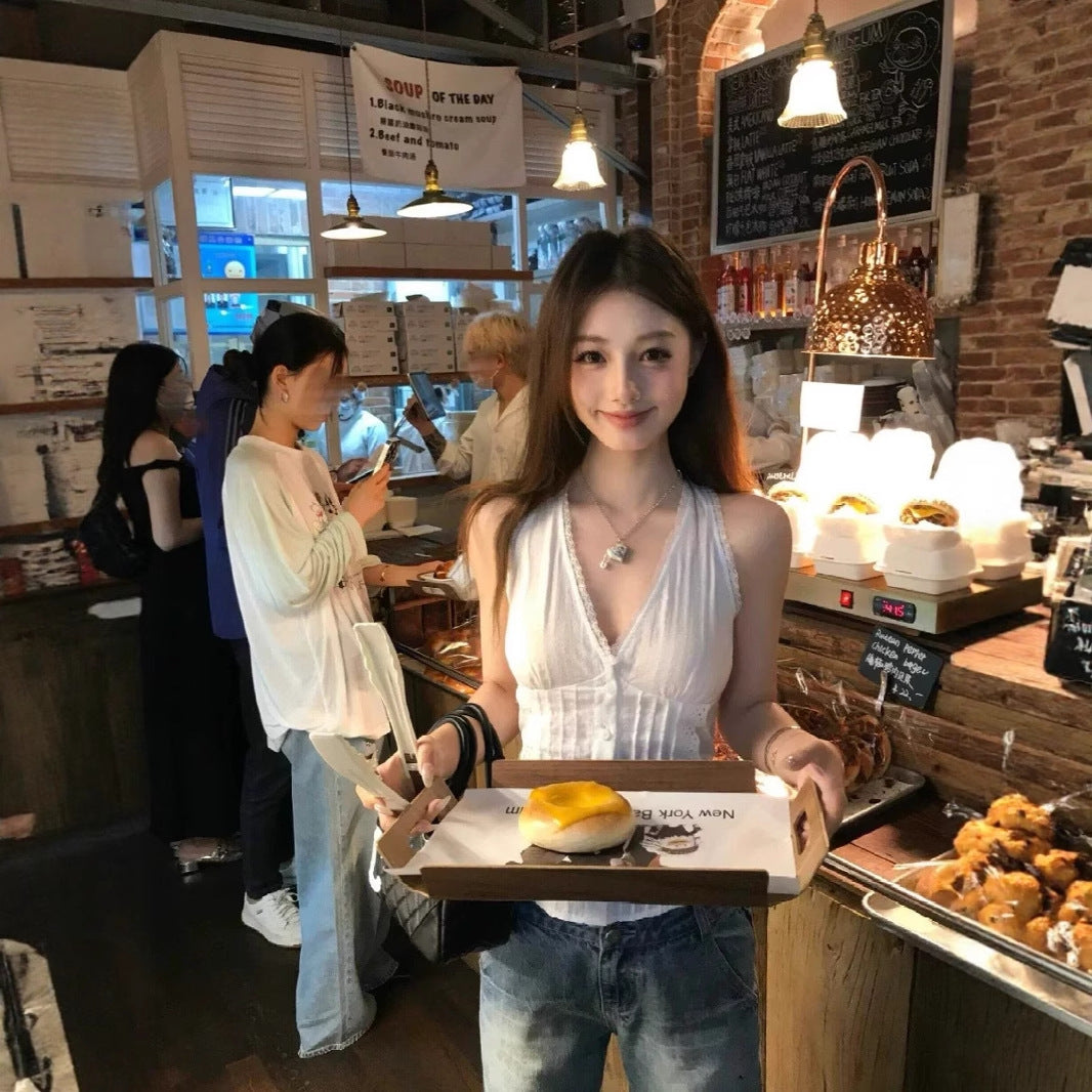 Elevate your wardrobe with the white lace deep V-neck camisole blouse, a perfect blend of elegance and allure. This lightweight blouse features a flattering deep V-neckline, delicate splicing lace trim, and a satin-smooth finish for a refined look. Whether you pair it with jeans for a casual-chic outfit or style it under a blazer for a more polished appearance, this camisole blouse is a versatile must-have.