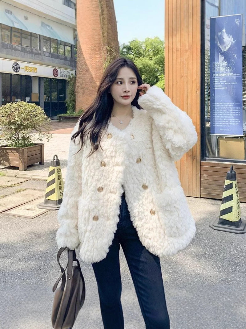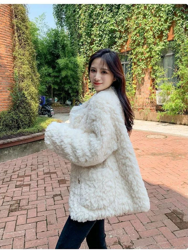 Stay warm and stylish this winter with our Winter Elegance Plush Wool Coat. Crafted from thick, soft lamb-like wool, this coat offers a luxurious, cozy feel while keeping you comfortable in chilly weather. Designed with a loose-fit, princess-style silhouette, it flatters petite frames and layers effortlessly over sweaters and dresses. Perfect for casual outings, office wear, or weekend adventures, this premium winter jacket combines fashion and function for every modern woman.