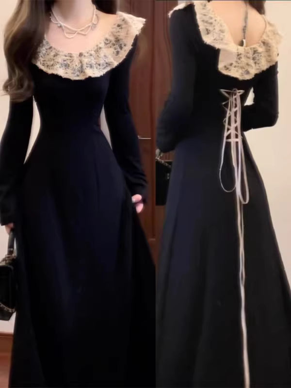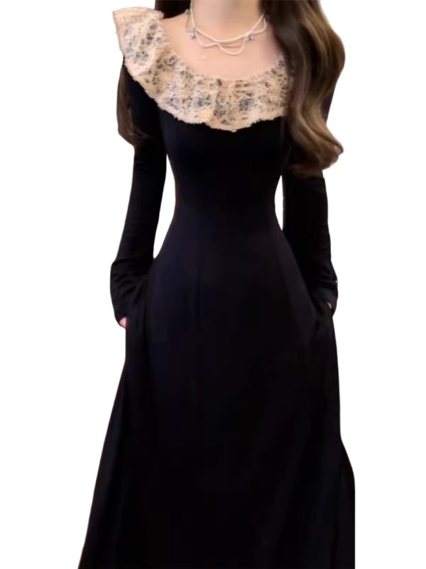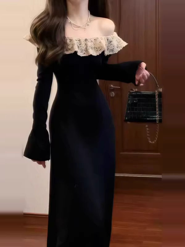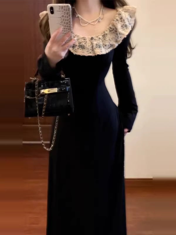 This black knit maxi dress presents a clean, elegant silhouette with a refined and polished feel. Designed with a flattering long cut, it drapes smoothly over the body to create a graceful and confident look. The soft knit fabric offers comfort while maintaining structure, making it suitable for both everyday wear and elevated occasions. Minimal yet striking, this dress highlights understated elegance and timeless style, easily paired with heels or boots for a sophisticated finish.