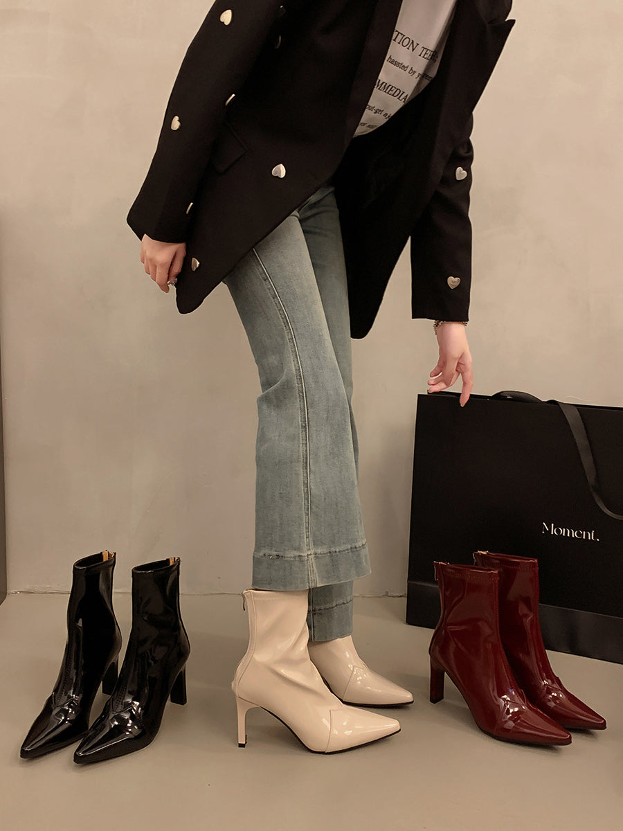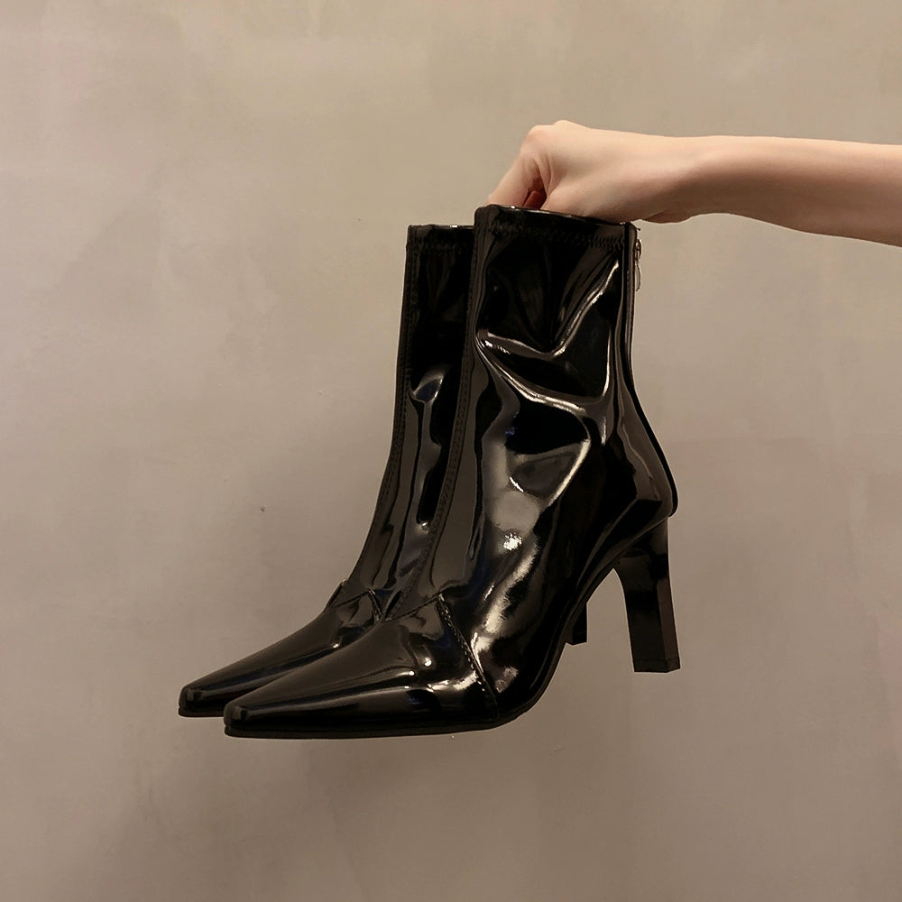 These women's ankle boots feature a sleek French-inspired pointed toe and a soft elastic upper that fits comfortably around the ankle. The sturdy chunky heel adds height while ensuring balance and comfort. Designed to elongate the legs with a flattering slim fit, these boots bring effortless elegance to both casual and dressy looks, making them a timeless wardrobe essential.
