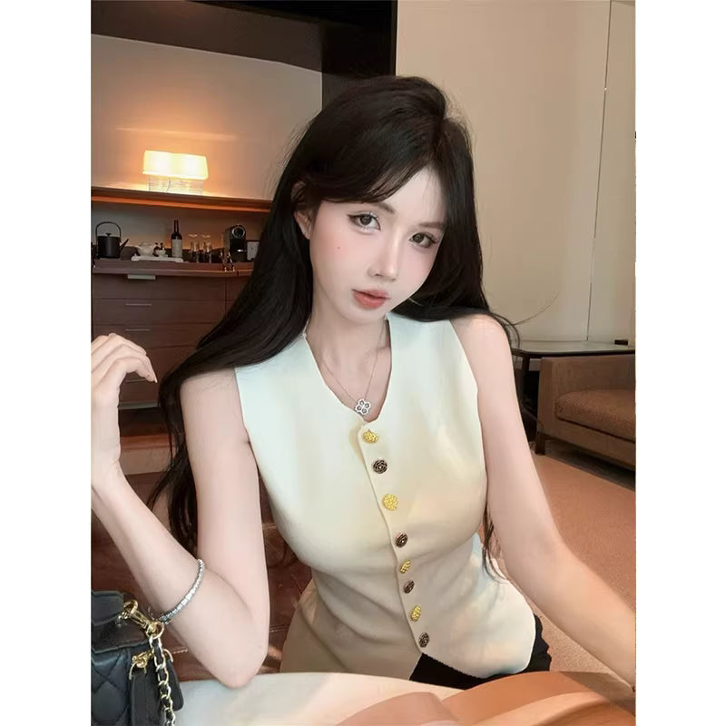 Upgrade your warm-weather wardrobe with this Women's Knitted Summer Vest, designed for effortless style and comfort. Featuring a unique and beautiful modern design, this sleeveless knit top is perfect for spring and summer layering or wearing on its own.