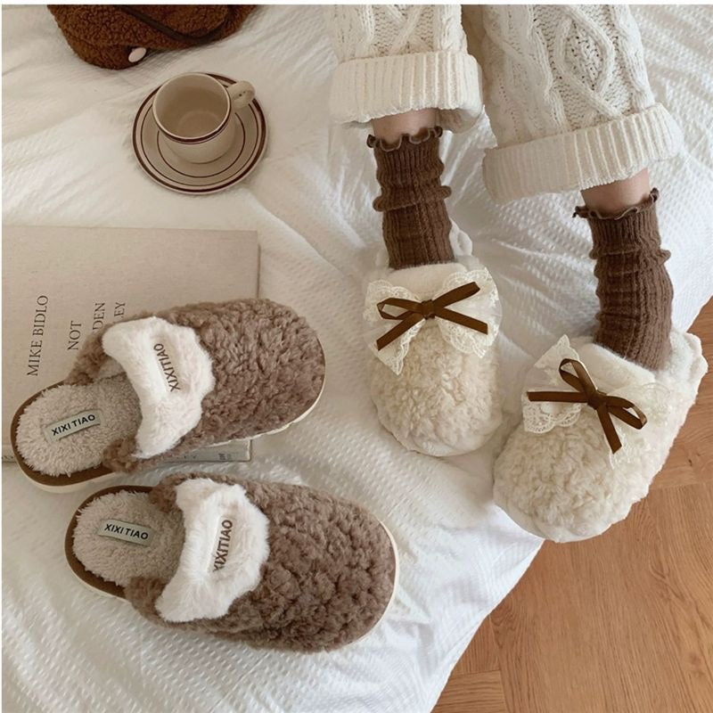 Stay cozy and stylish this winter with these women's cotton slippers, designed for warmth and comfort. Featuring a charming bow detail, these slippers combine fashion with function. The thick, cushioned sole offers excellent support, while the non-slip bottom ensures stability on various surfaces. Perfect for students and homebodies alike, these versatile slippers are ideal for lounging, studying, or casual indoor wear. Their classic design pairs effortlessly with any loungewear, making them a must-have for chilly days.