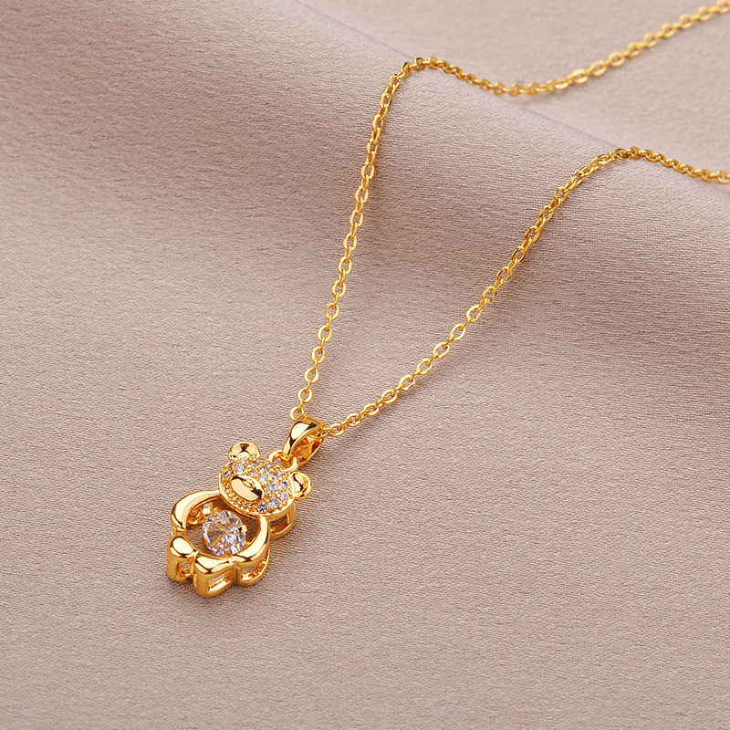 Add a playful yet elegant touch to your style with this Titanium Steel Zircon Bear Necklace. Featuring a cute bear pendant adorned with shimmering zircon stones, this light luxury clavicle chain is perfect for women who love unique, high-quality accessories. Crafted from non-fading titanium steel, it ensures long-lasting shine and durability. Its versatile design effortlessly complements casual and formal outfits, making it a must-have for any jewelry collection.
